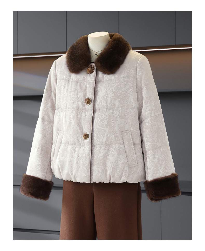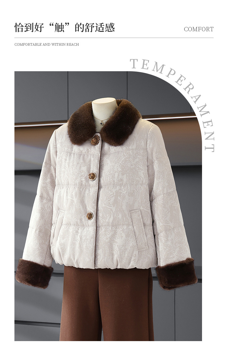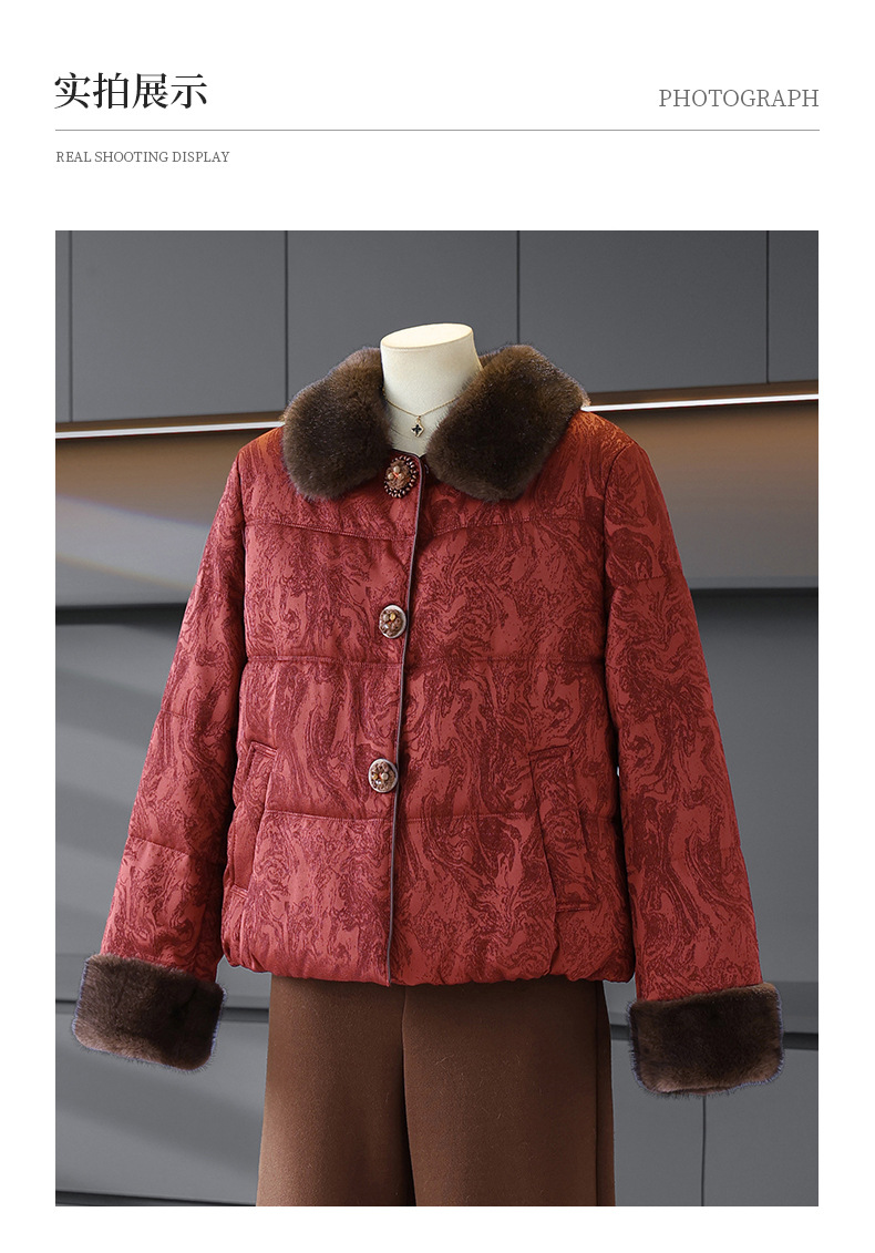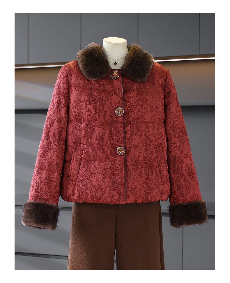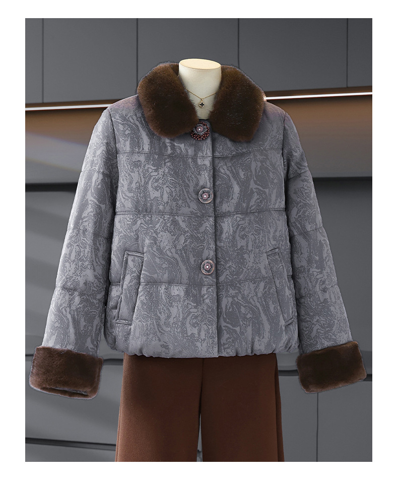 可拆卸毛领长袖外套女气质减龄妈妈装冬季保暖棉衣洋气小个子棉服