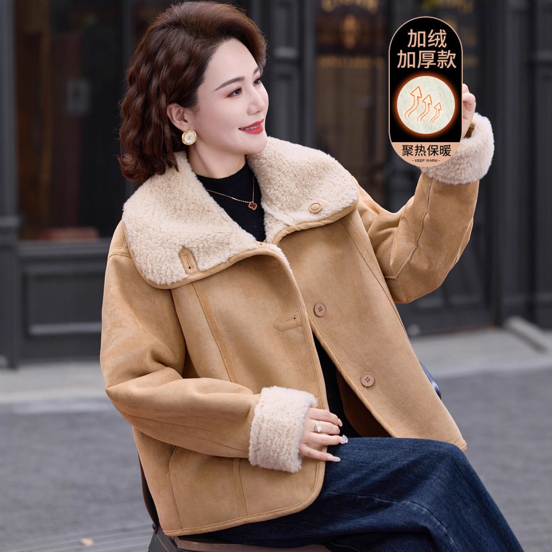中老年女羊羔毛短外套2025冬季新款妈妈超好看加厚两面穿皮毛一体