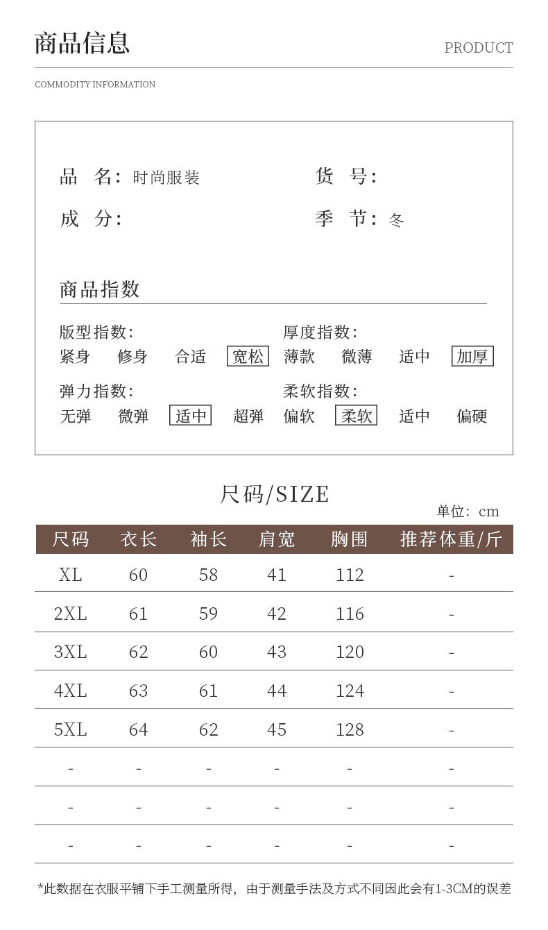 尺码 XL【建议90-105斤】,2XL【建议105-120斤】,3XL【建议120-135斤】,4XL【建议135-150斤】,5XL【建议150-165斤】