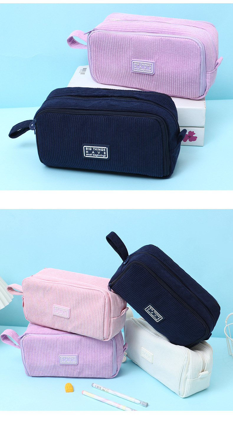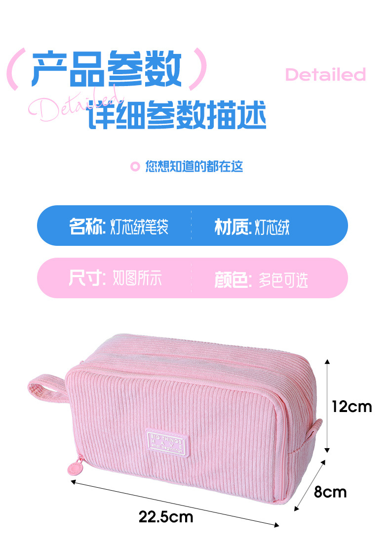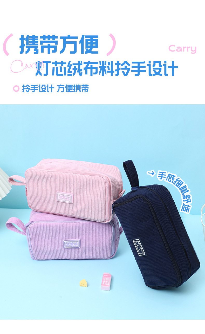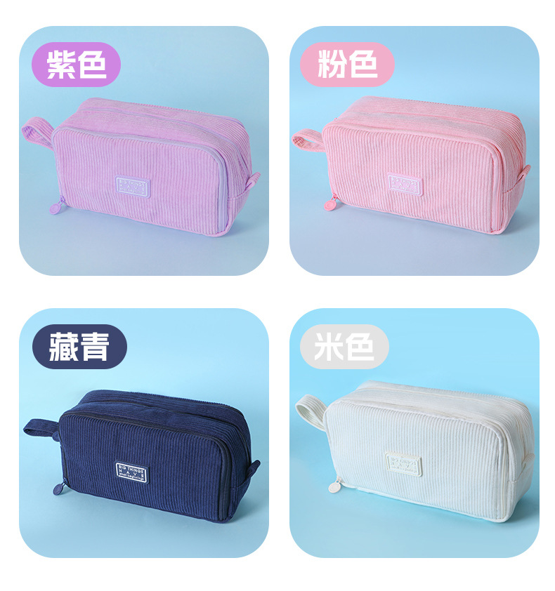 跨境大容量笔袋灯芯绒新款铅笔文具盒男女通用学习文具袋
