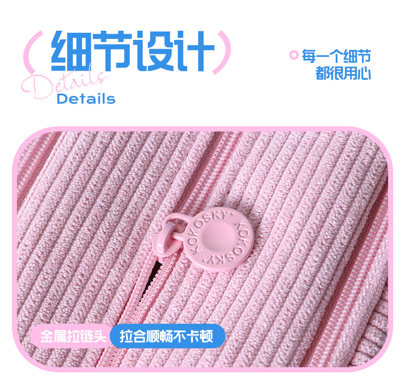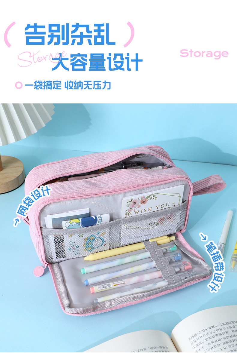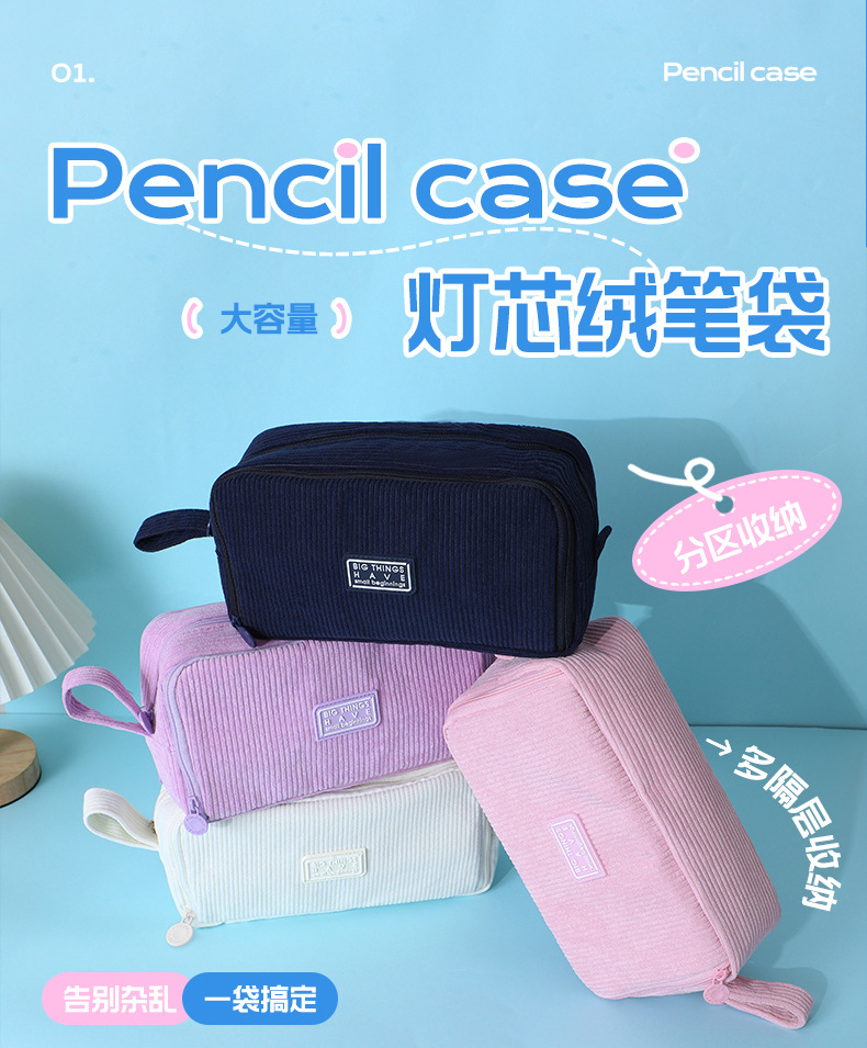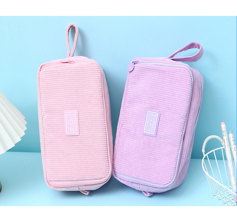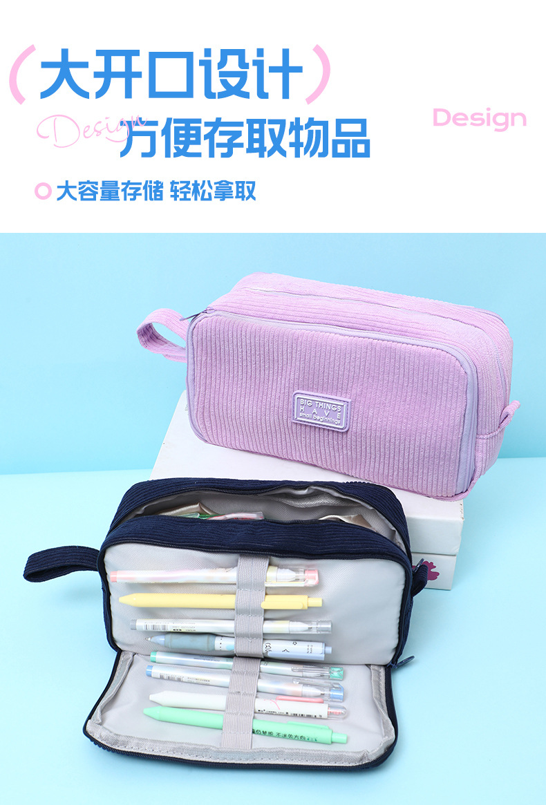 跨境大容量笔袋灯芯绒新款铅笔文具盒男女通用学习文具袋