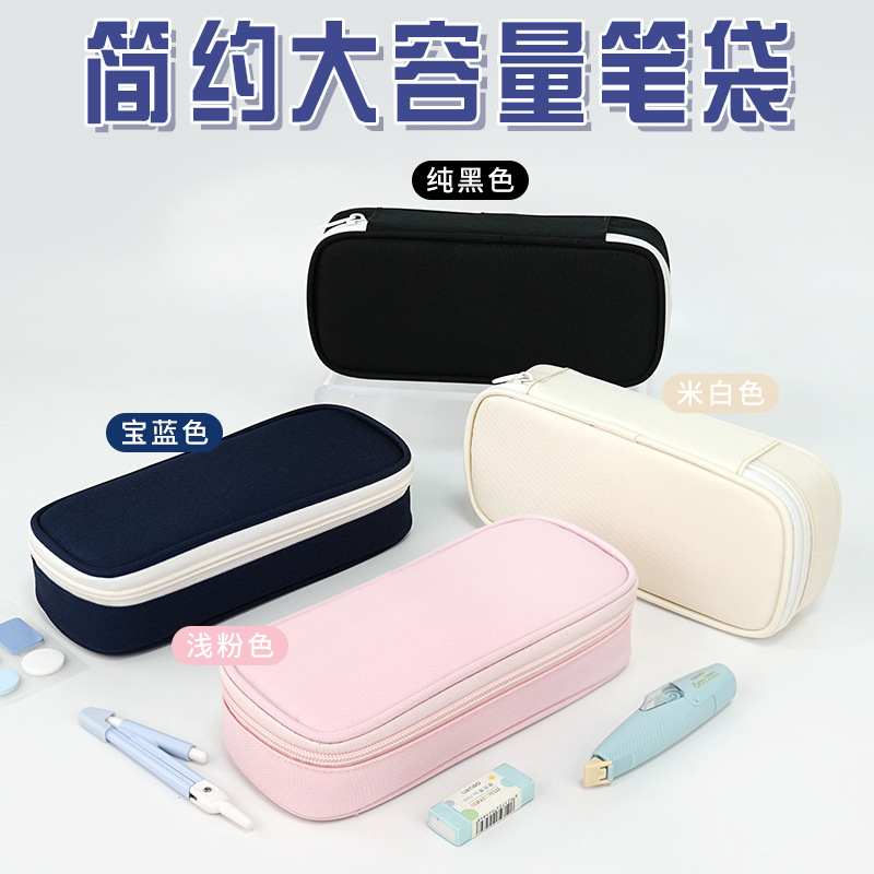笔袋可加印logo简约大容量高颜值牛津布学生铅笔盒纯色文具盒笔袋