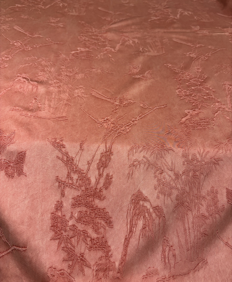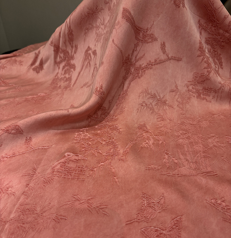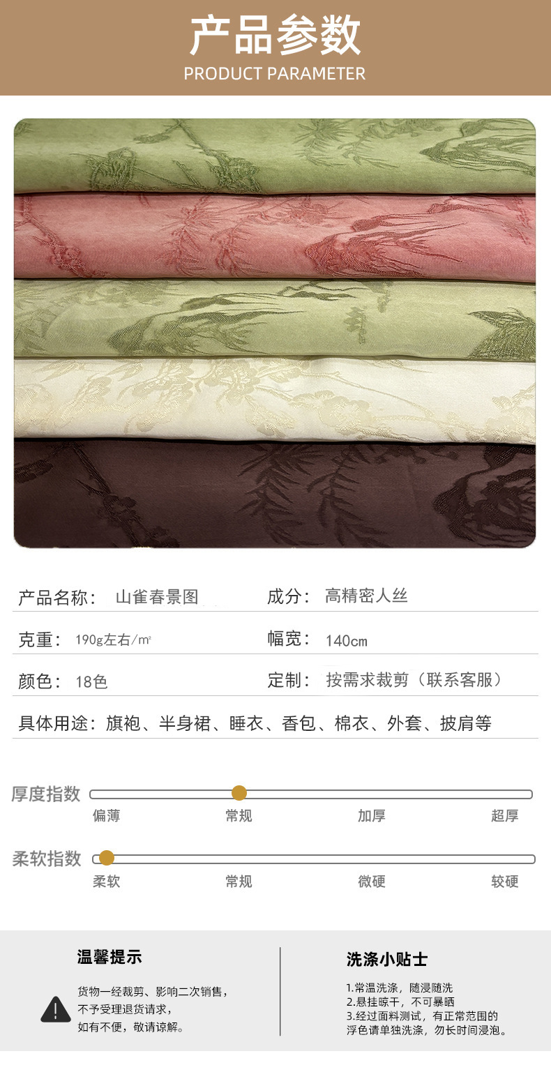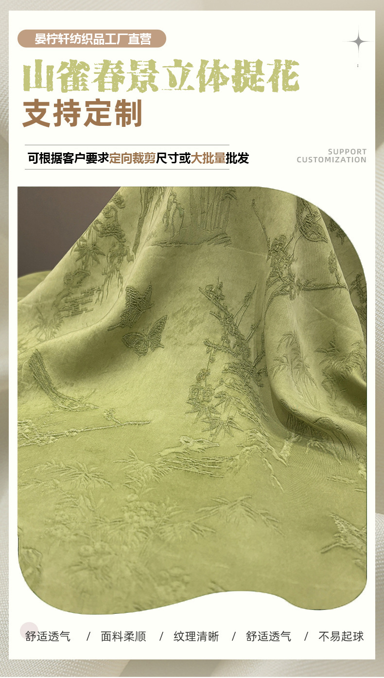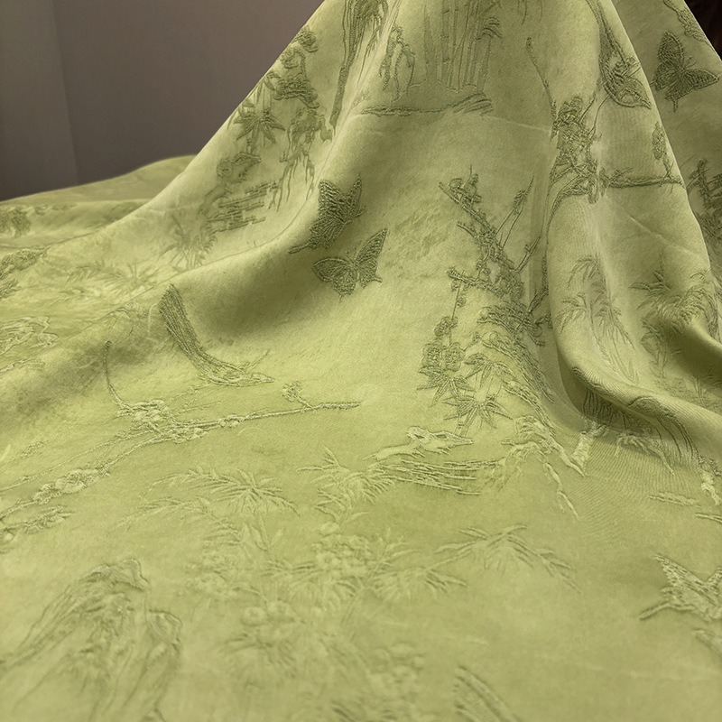 2025秋季新款山雀春景国风立体提花面料连衣裙旗袍服装布料汉服