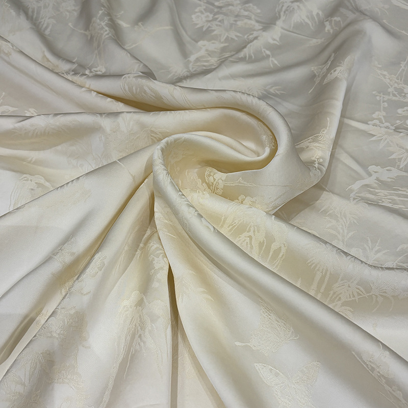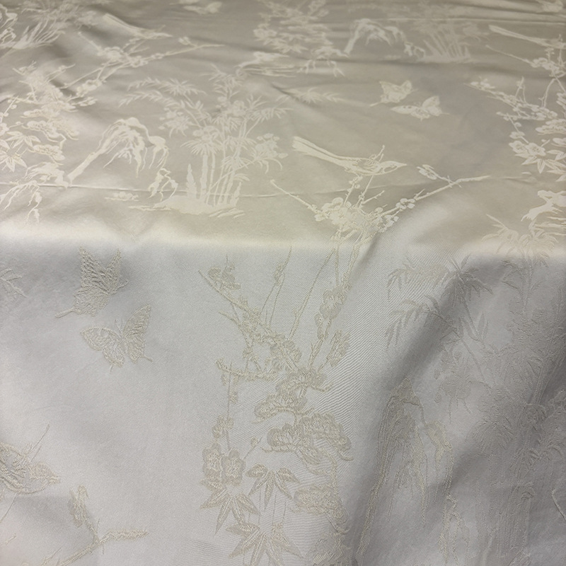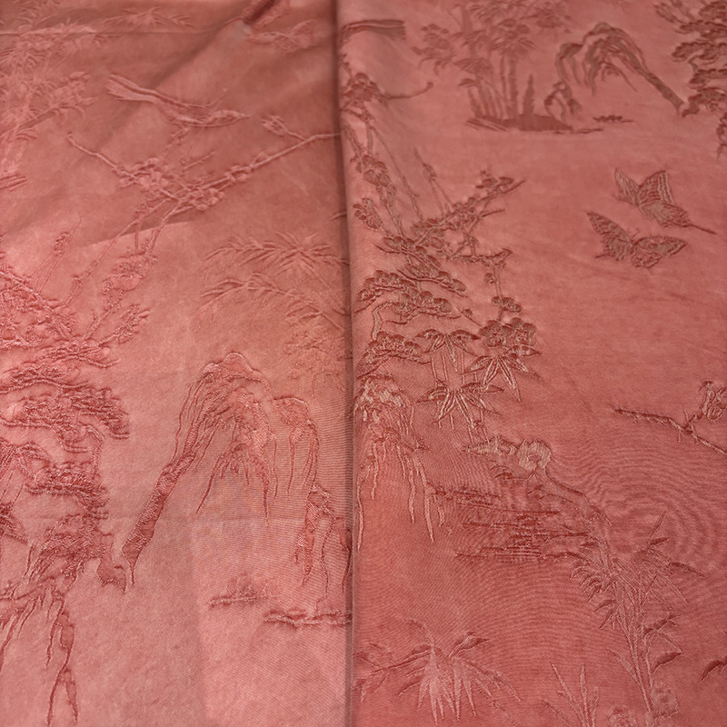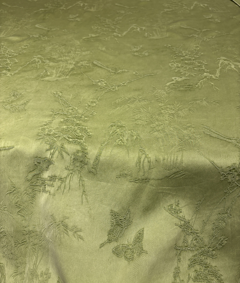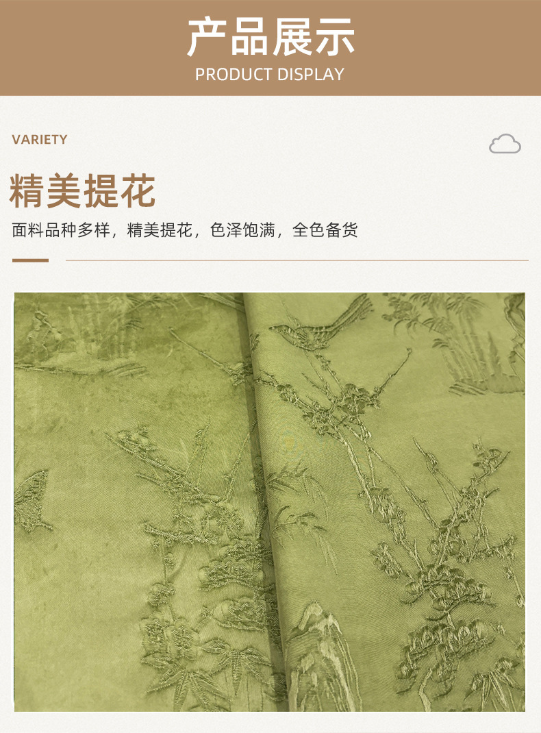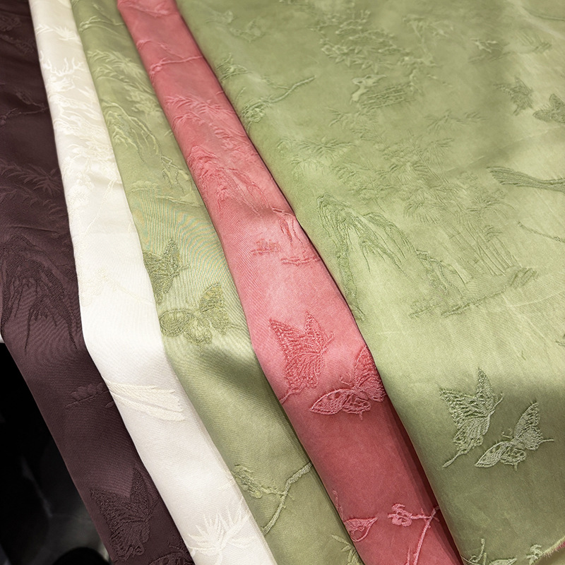 2025秋季新款山雀春景国风立体提花面料连衣裙旗袍服装布料汉服