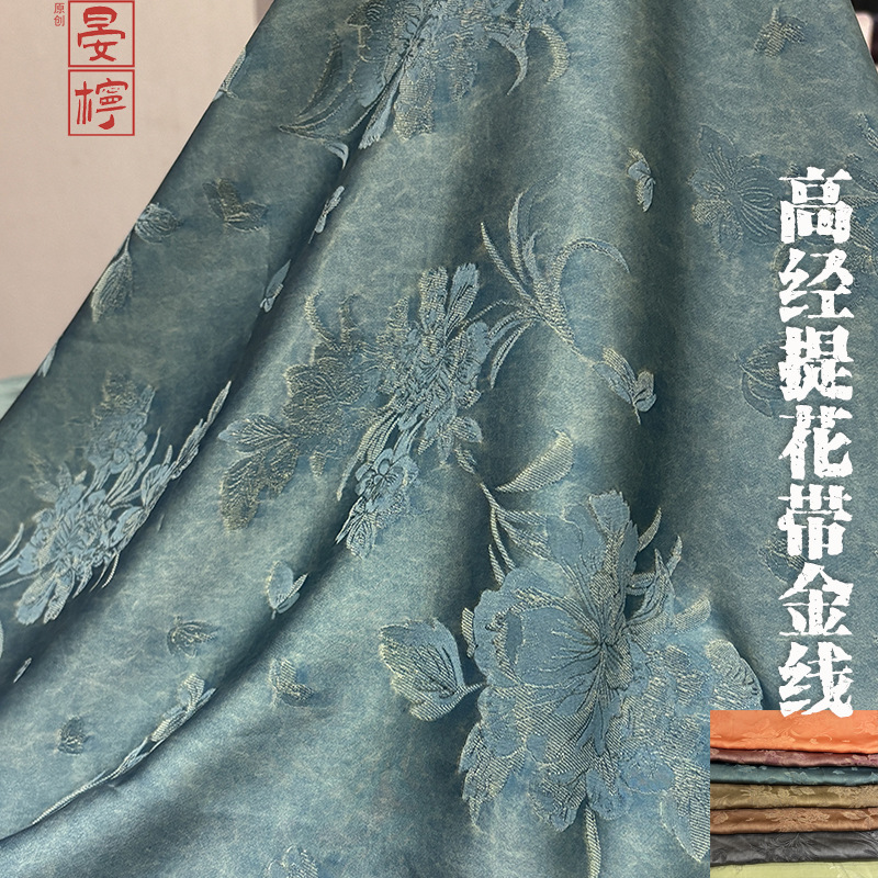 栀子花莫兰迪色高经提花布料金线立体中式女装连衣裙服装面料四季