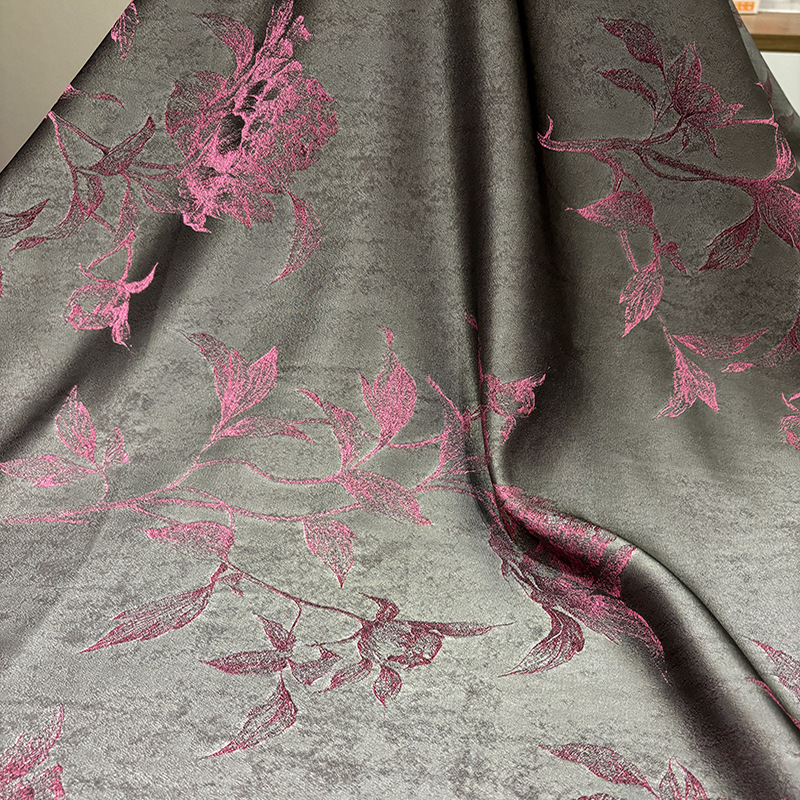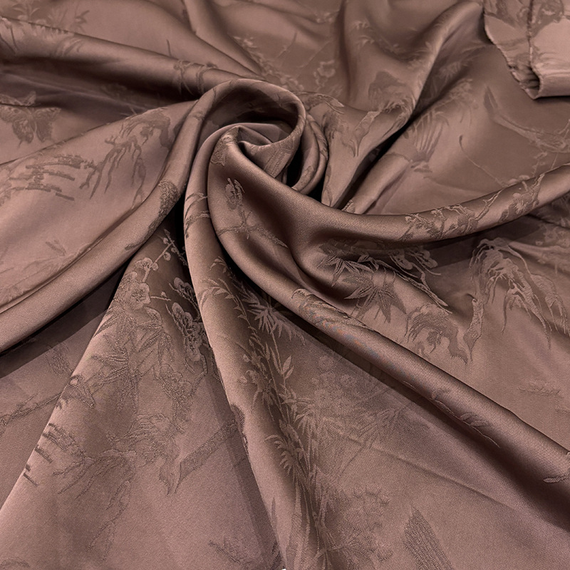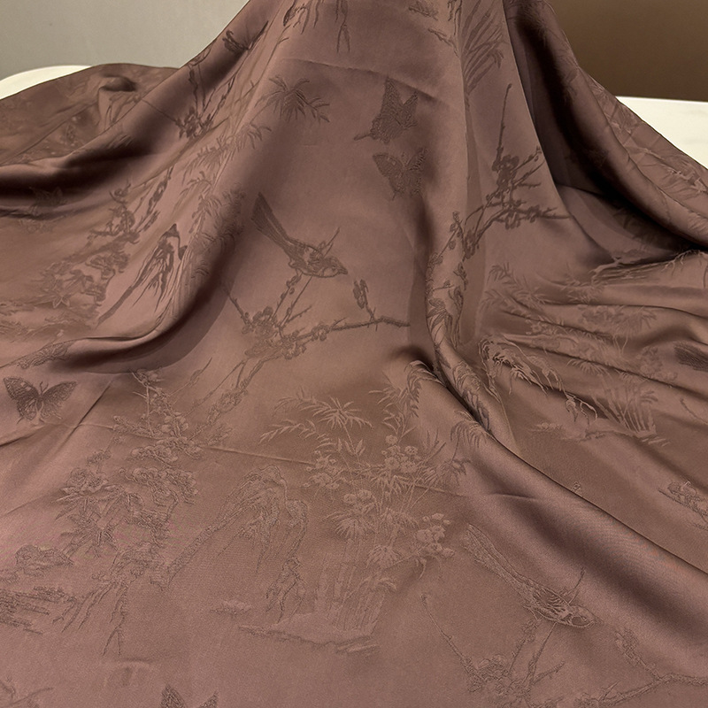 梅兰竹菊重缎香云纱面料植物染仿桑蚕丝旗袍连衣裙服装面料国风秋