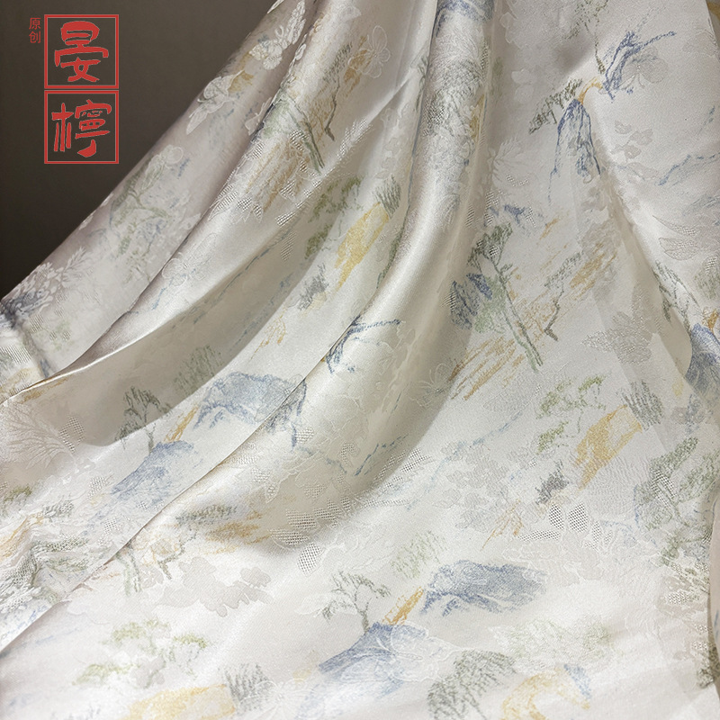 缎面晕染香云纱面料旗袍连衣裙服装布料中国风汉服丝绸丝巾百搭秋