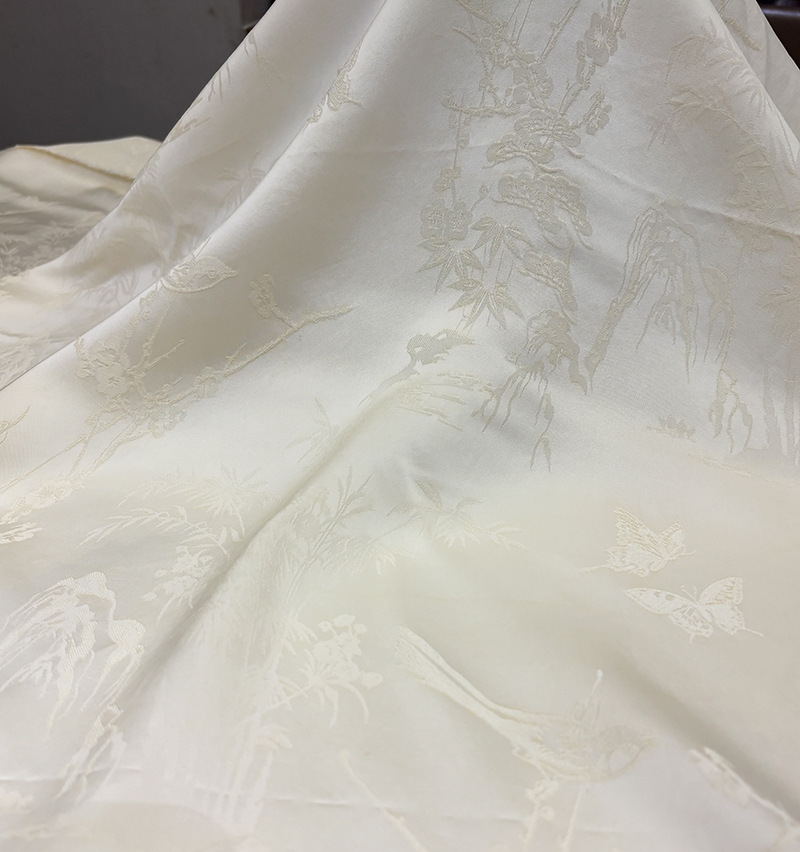 両面サテン亀割れ真糸香雲糸生地绢糸梅蘭竹菊模様中国風チャイナドレス生地