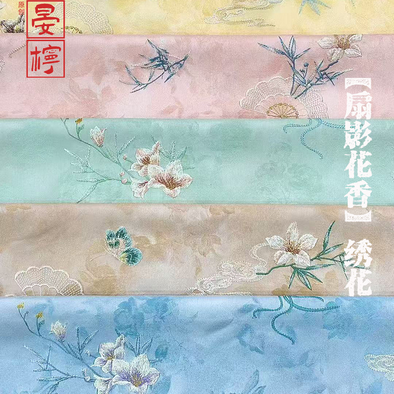 【扇影花香】国风宋锦刺绣布料服装中式旗袍面料高端女装绣花布