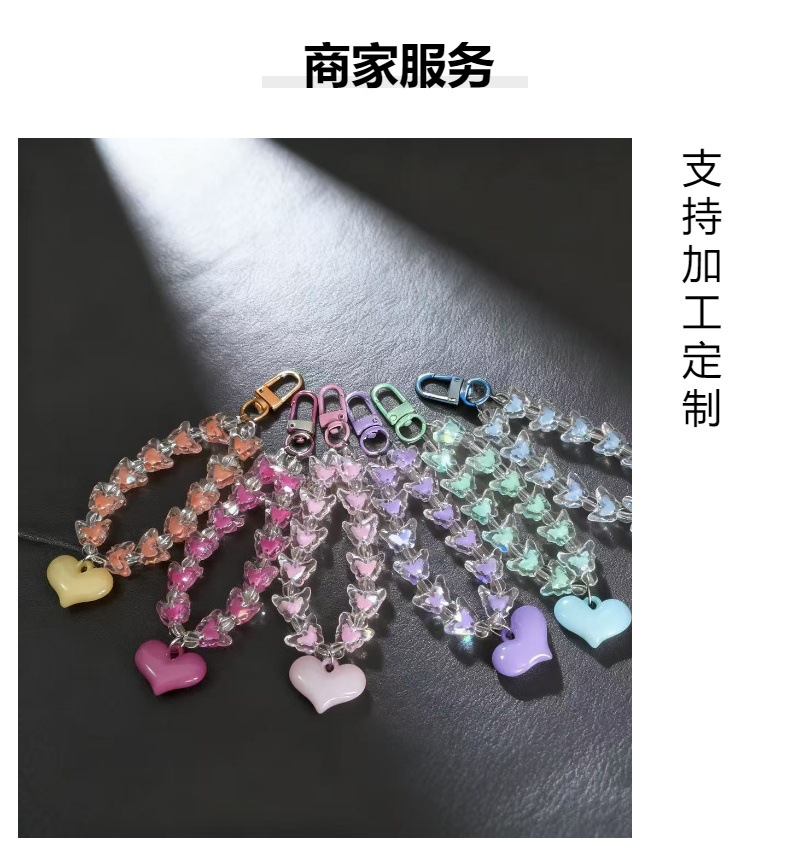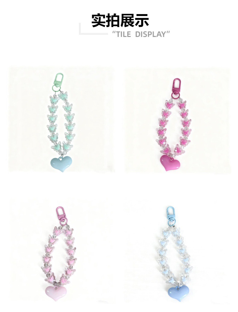 创意爱心蝴蝶串珠吊坠手机链钥匙扣高级感挂件包包挂饰化妆品挂饰
