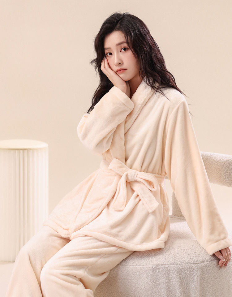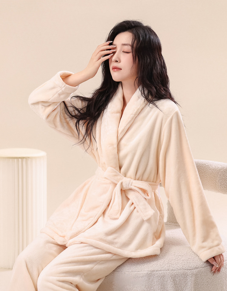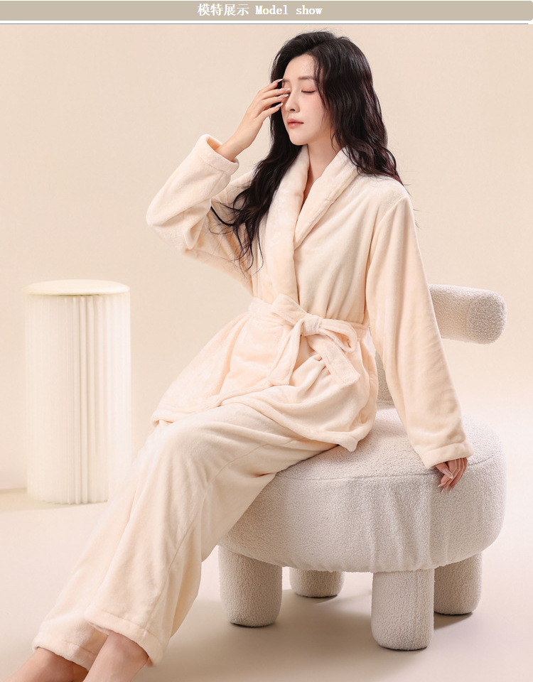 2025新款秋冬加厚法兰绒睡袍套装女居家服珊瑚绒家居服孕妇月子服