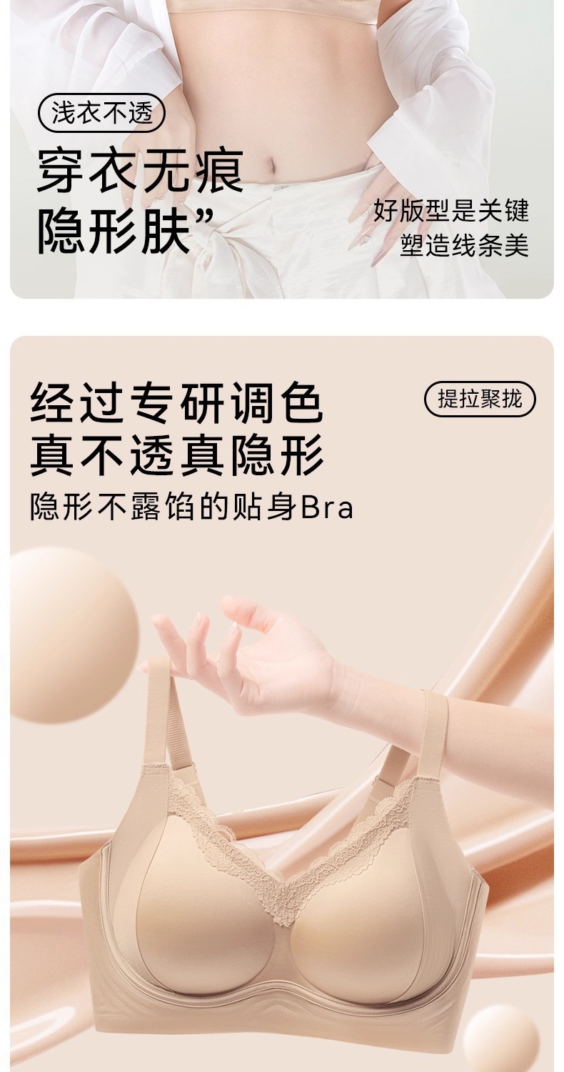 裸感提拉无痕内衣女大胸显小聚拢上托防下垂收副乳无钢圈无磁文胸
