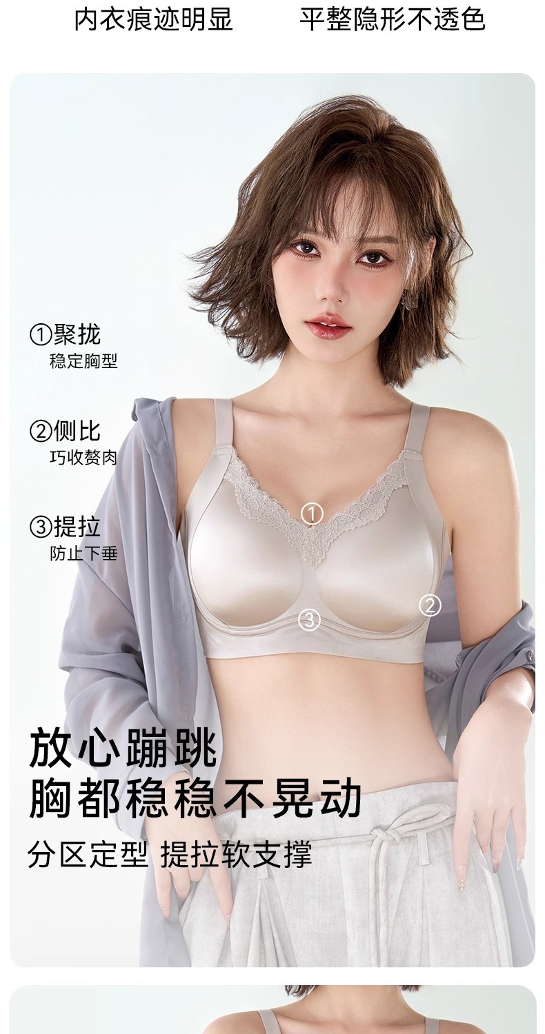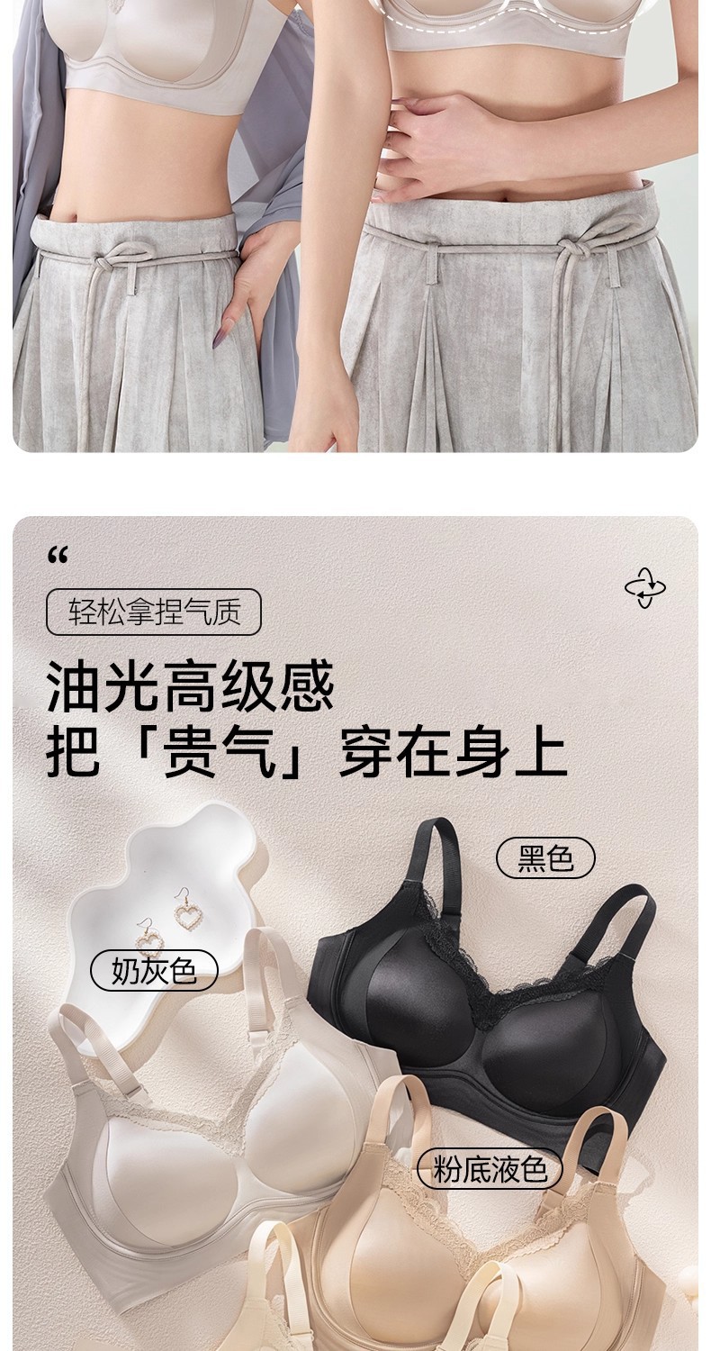 缎面轻奢光面美胸调整型养护内衣女舒适无钢圈聚拢侧收收副乳文胸
