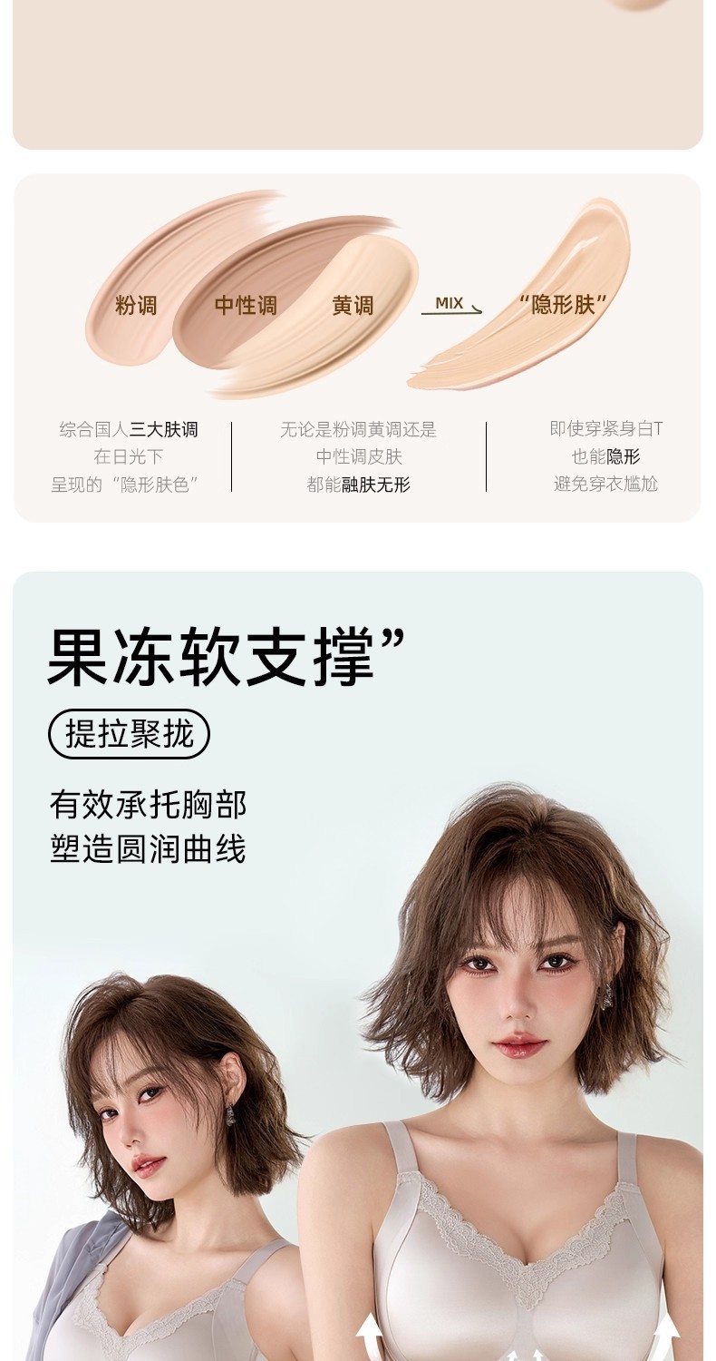 功能 聚拢,无痕,透气,上托,防走光,调整型,舒适,侧收,收副乳,防凸点,大胸显小