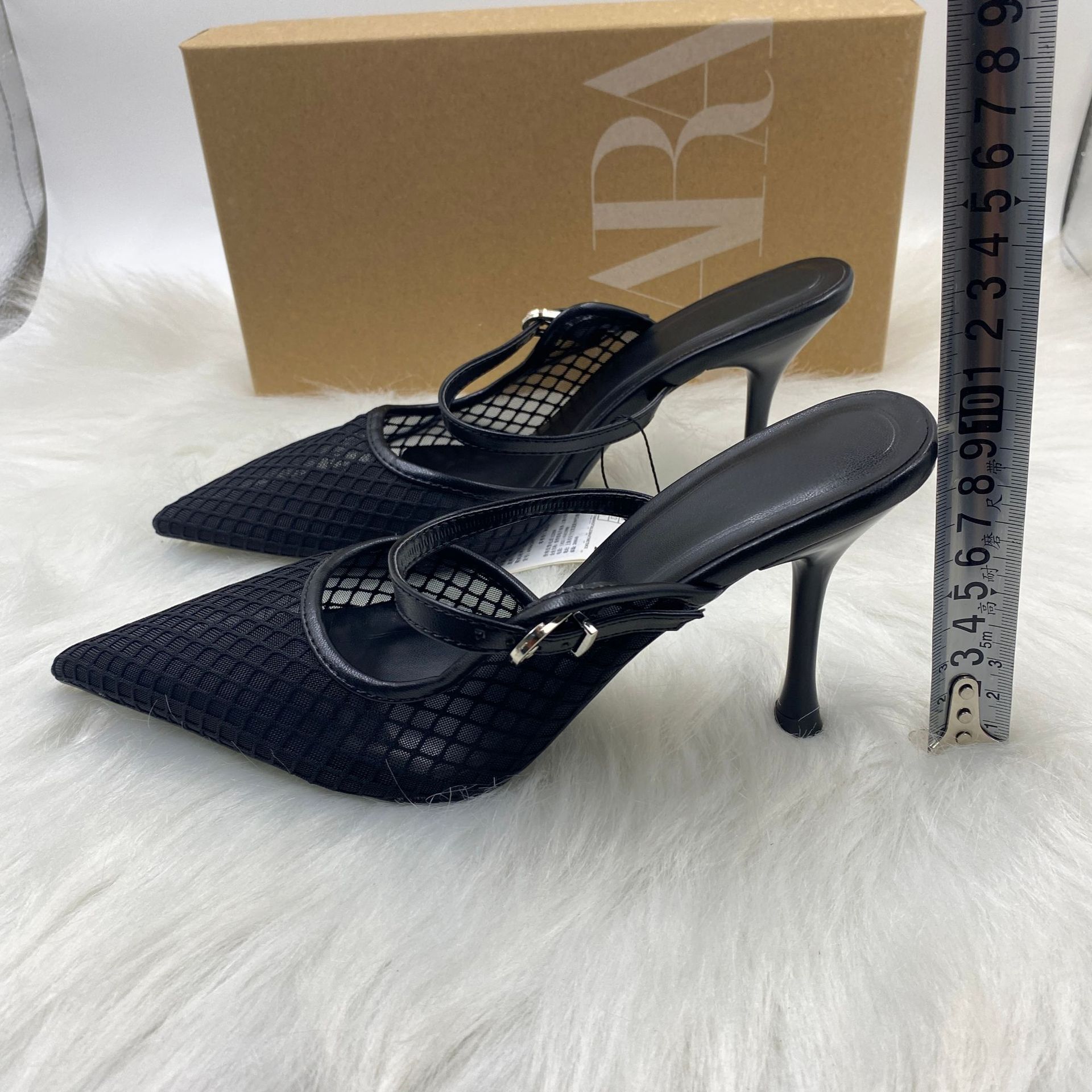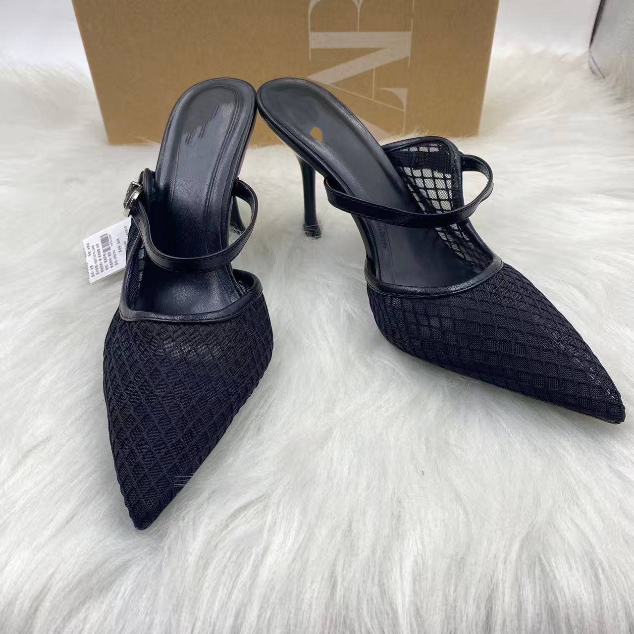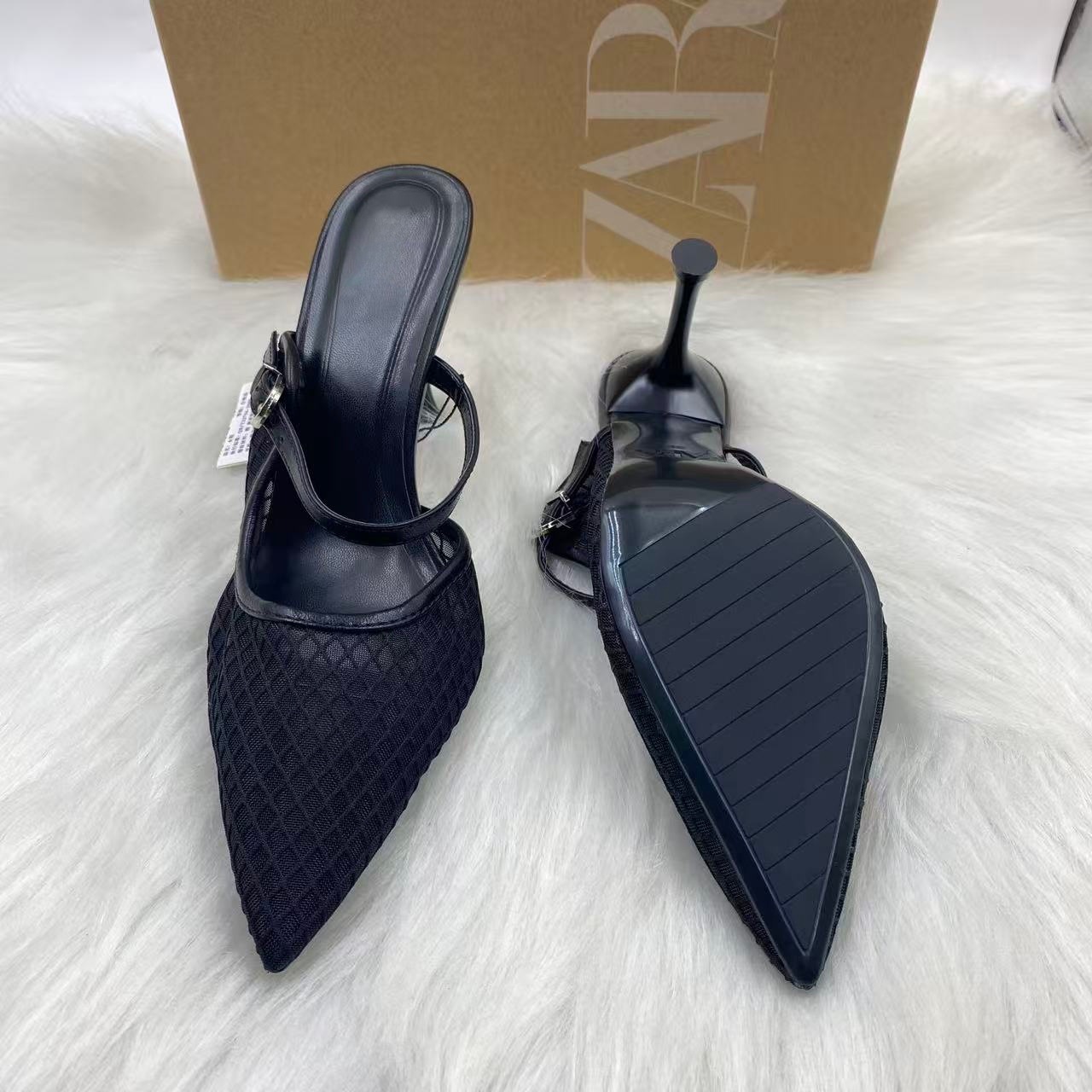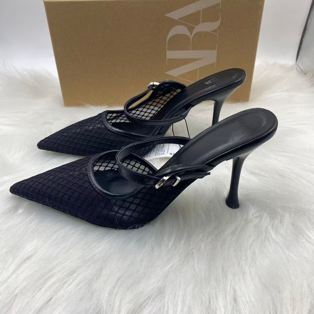 ZA 2025年新品先端包頭後空純色刺繍網面細ハイヒールミュラー靴8236