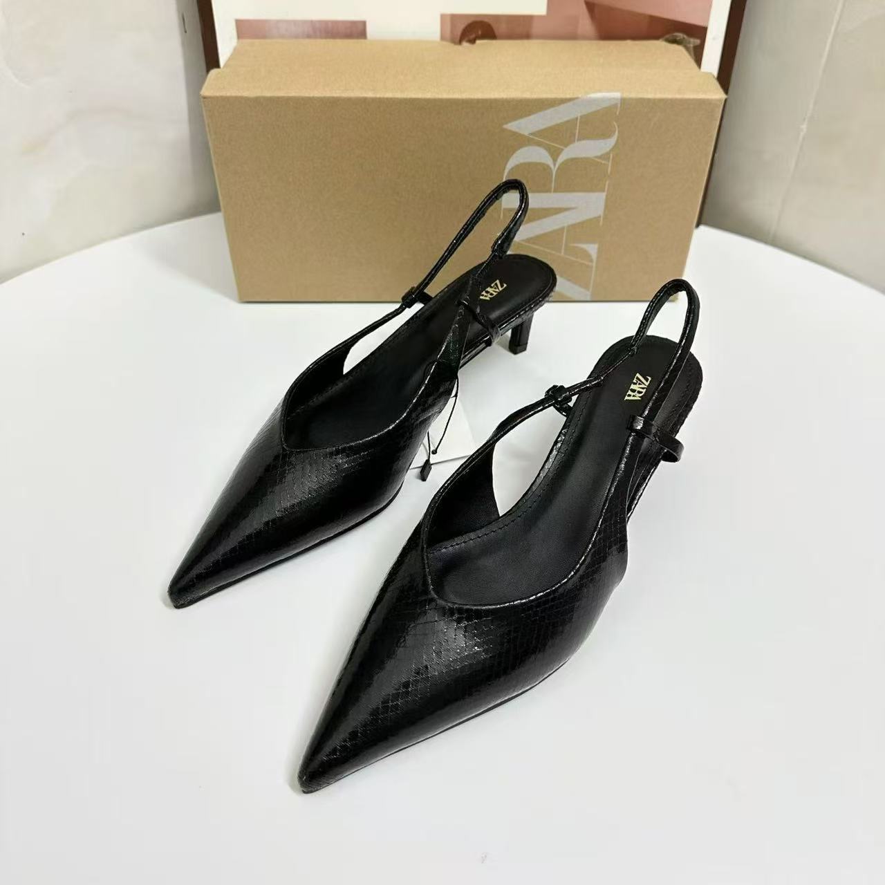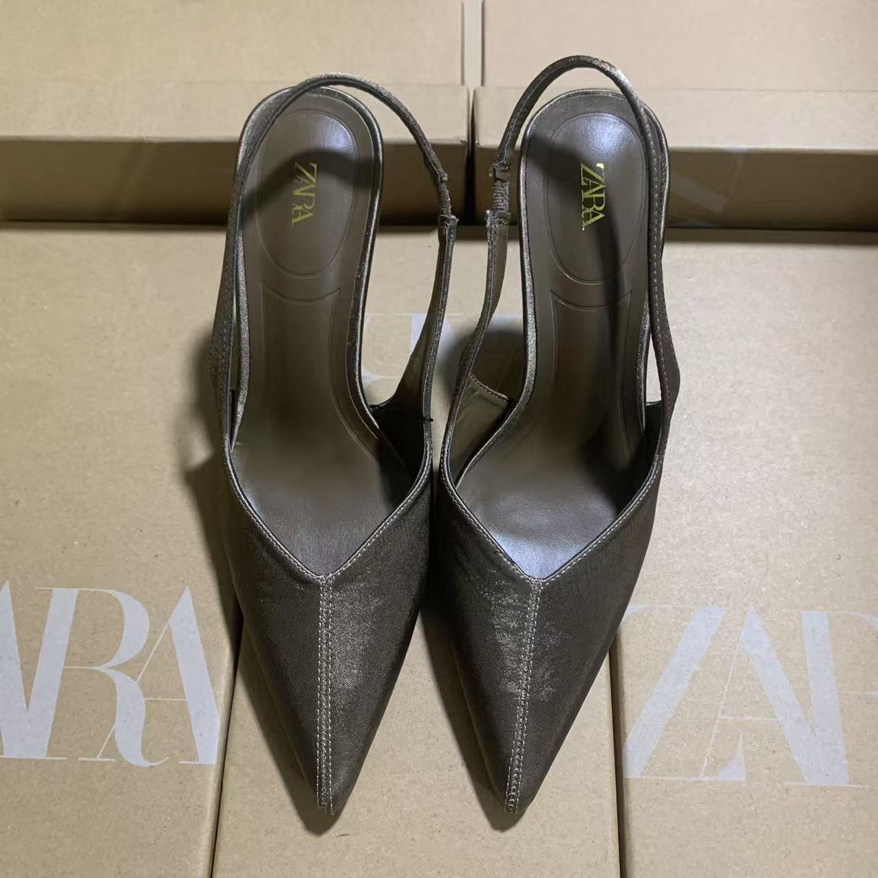 ZA家2025新款女鞋低跟气质名媛高跟鞋包头跨境凉鞋后绊带单鞋