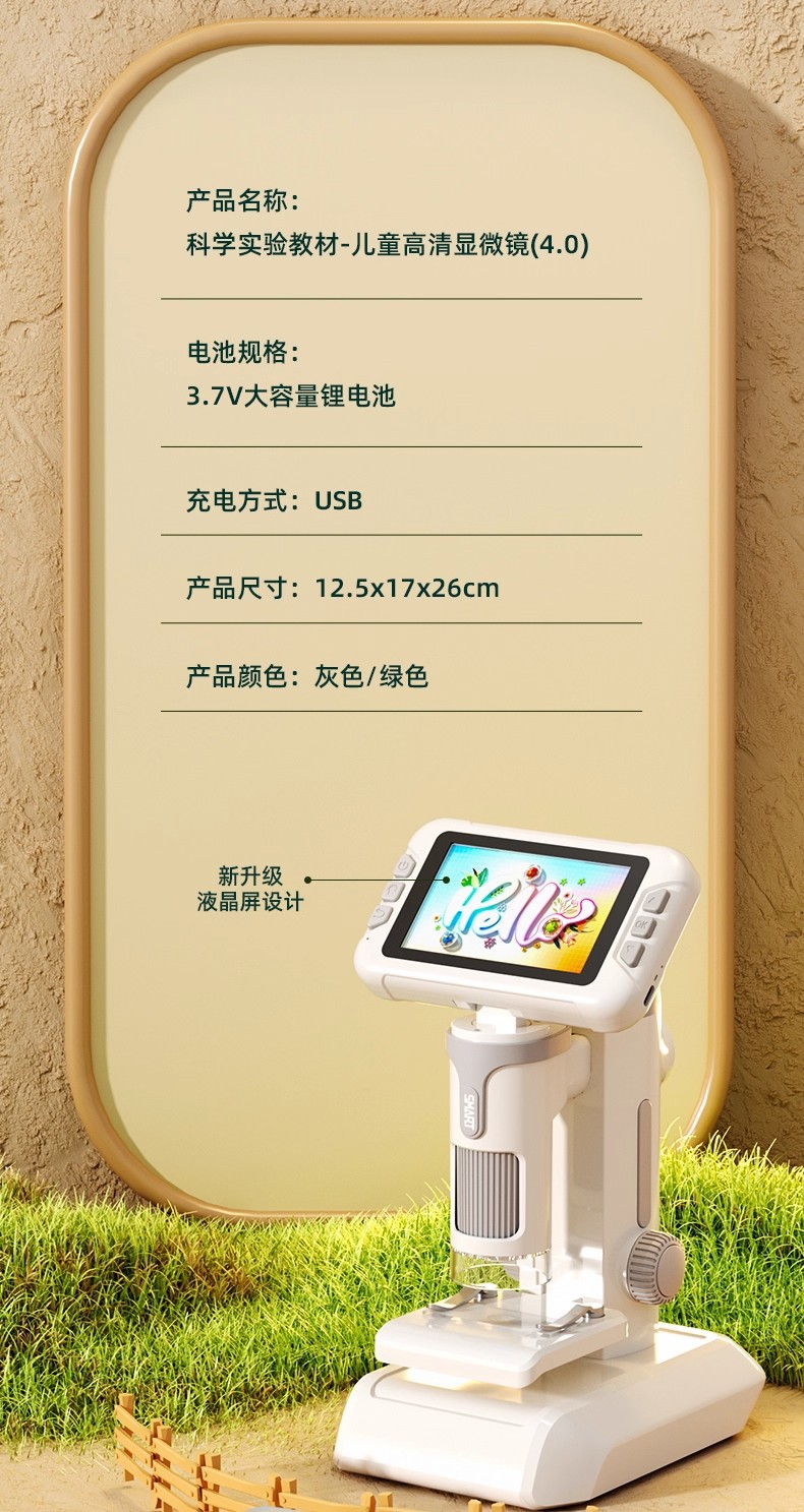 颜色 「自备内存卡」4.0寸多功能彩屏显微镜-灰【送14标本+工具+挂绳+教程书】,「自备内存卡」4.0寸多功能彩屏显微镜-绿【送14标本+工具+挂绳+教程书】,「自备内存卡」2.0寸多功能彩屏显微镜-灰【送2标本+工具+挂绳+教程书】,「自备内存卡」2.0寸多功能彩屏显微镜-灰【送14标本+工具+挂绳+教程书】