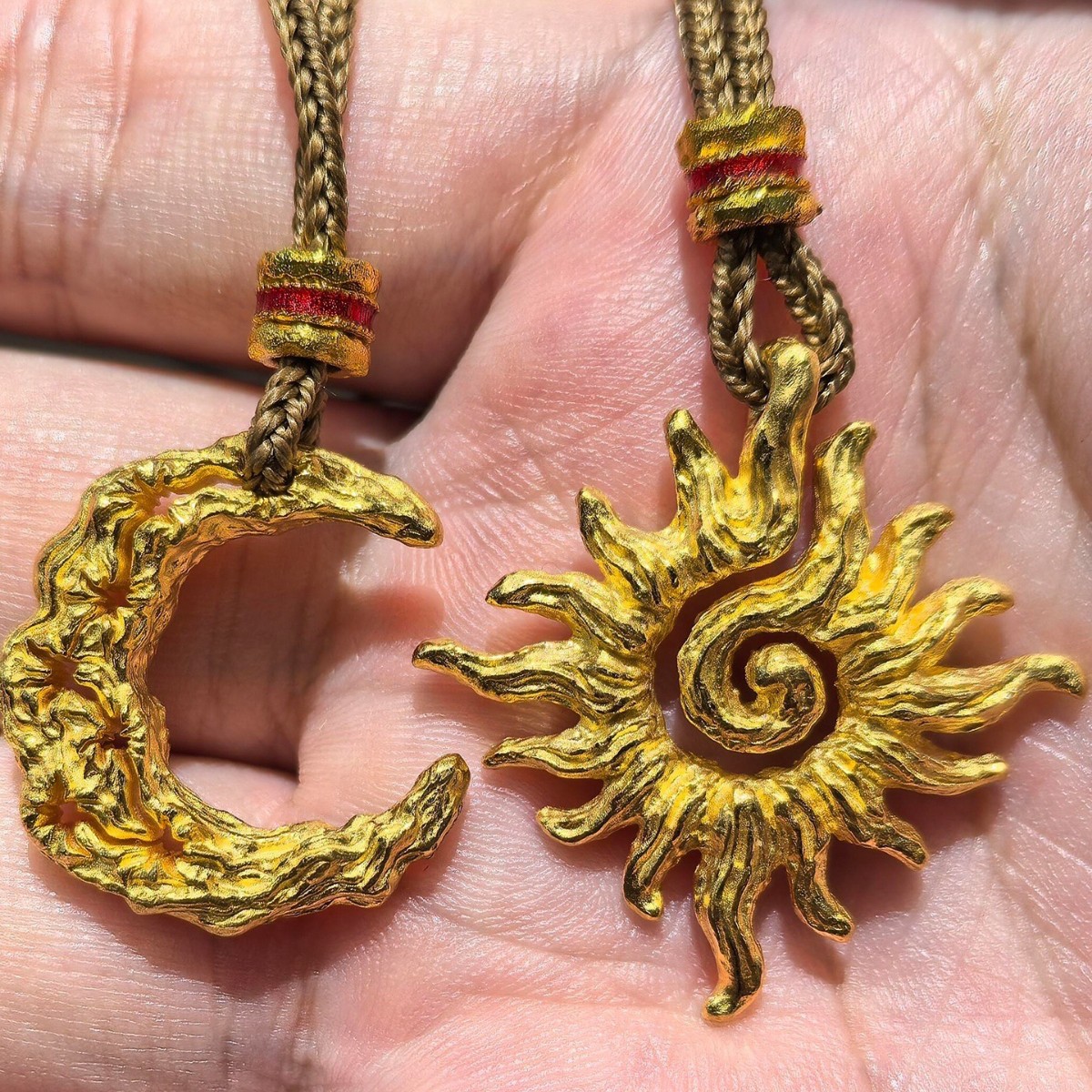 欧美复古螺纹太阳月亮项链时尚百搭气质个性小众螺纹太阳月亮项链