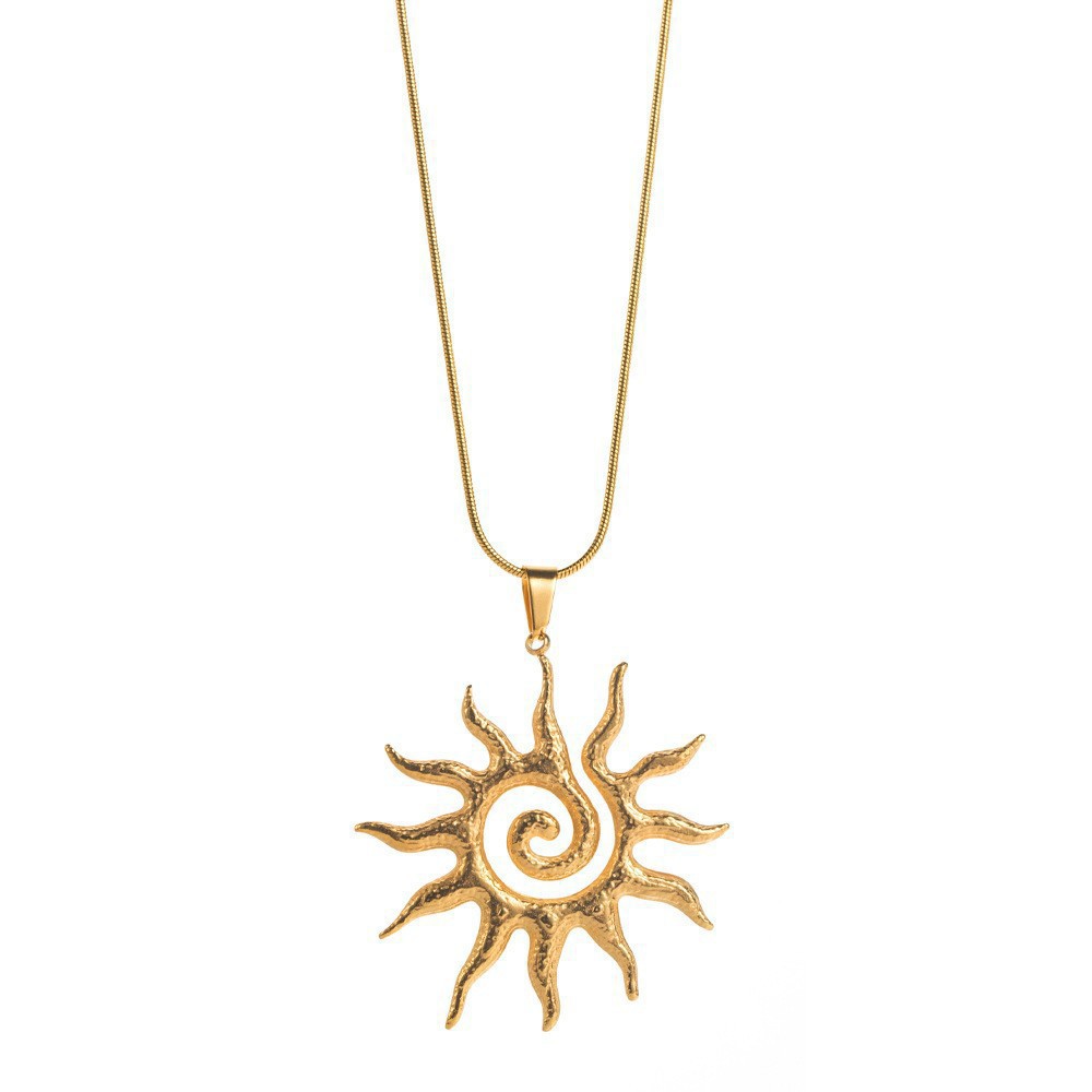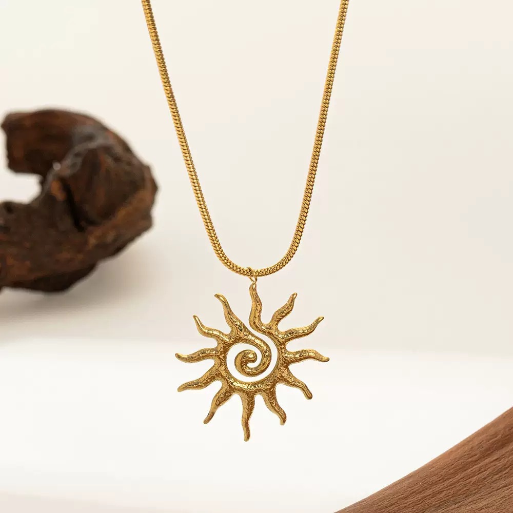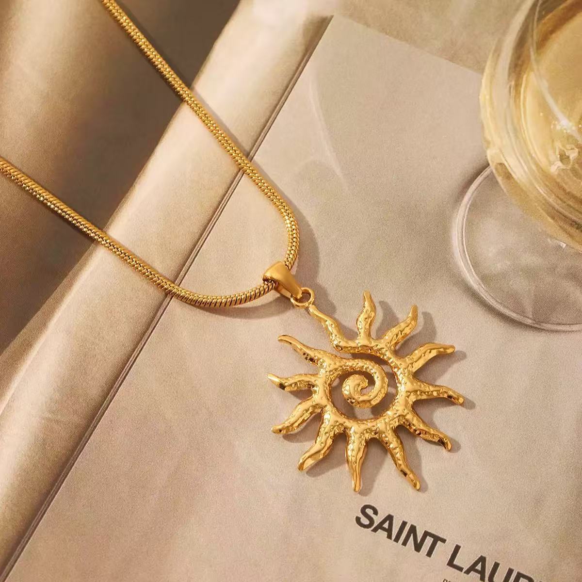亚马逊螺旋太阳吊坠项链女跨境个性18K真金镂空时尚简约颈链批发