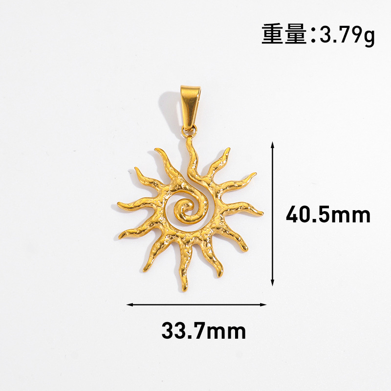 欧美新款不锈钢锤纹螺旋太阳吊坠项链轻奢钛钢锁骨链高级感饰品女
