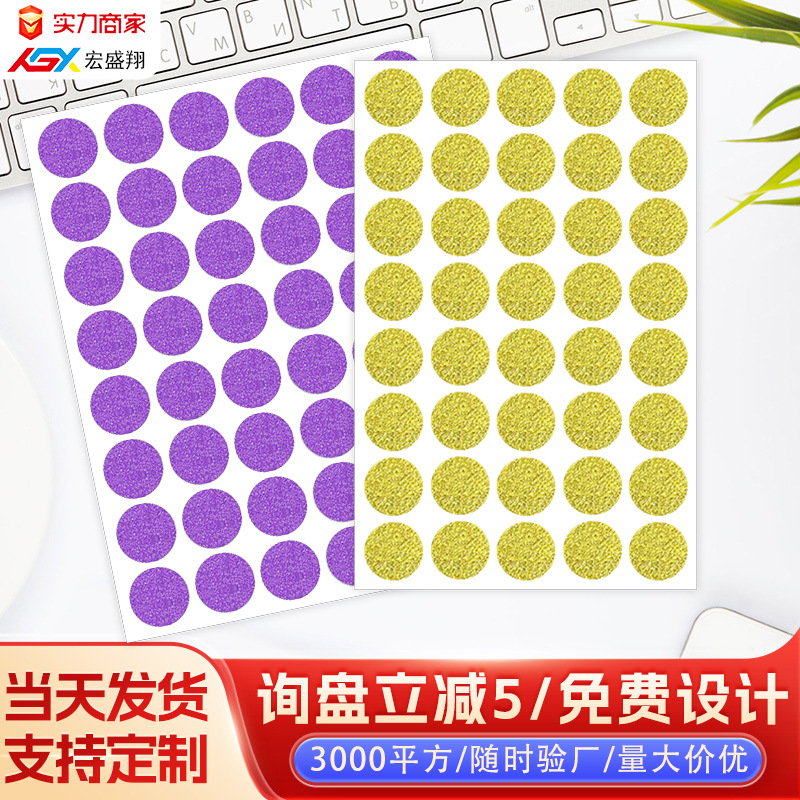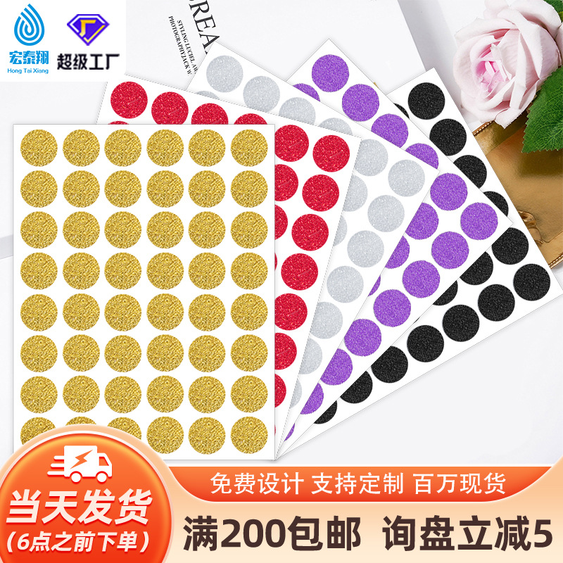 跨境亚马逊彩色金葱圆点标签圆形空白标识贴纸分类标签不干胶封口