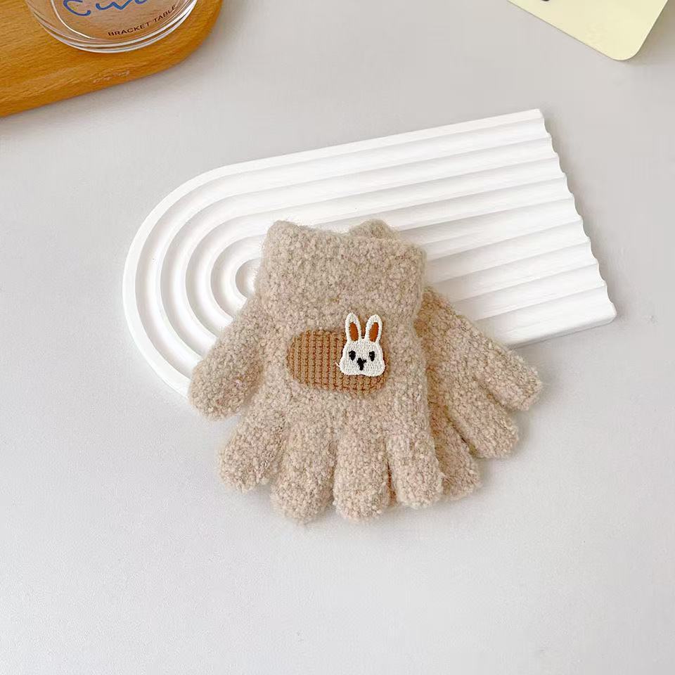 卡通兔子儿童冬天防寒手套加厚保暖五指男女宝宝通用幼儿园1-8岁