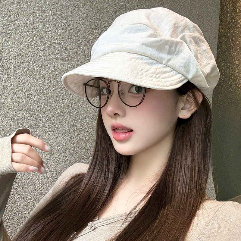 日系轻薄透气八角帽子女夏季复古褶皱显脸小贝雷帽出游遮阳报童帽