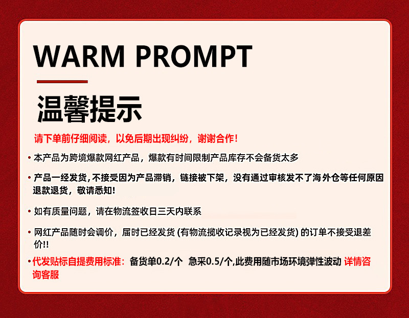 1688.comは中国で生産され、流通している商品を扱うBtoB卸サイトとなります。お客様が弊社サイト内にて仕入処理をされても、日本国内の法律に則り、日本への輸入ができない商材もあり、その場合弊社でも仕入れの手配が出来ません。その際はシステム上で、自動的に注文削除となってしまう事を、恐れ入りますがご了承願います。