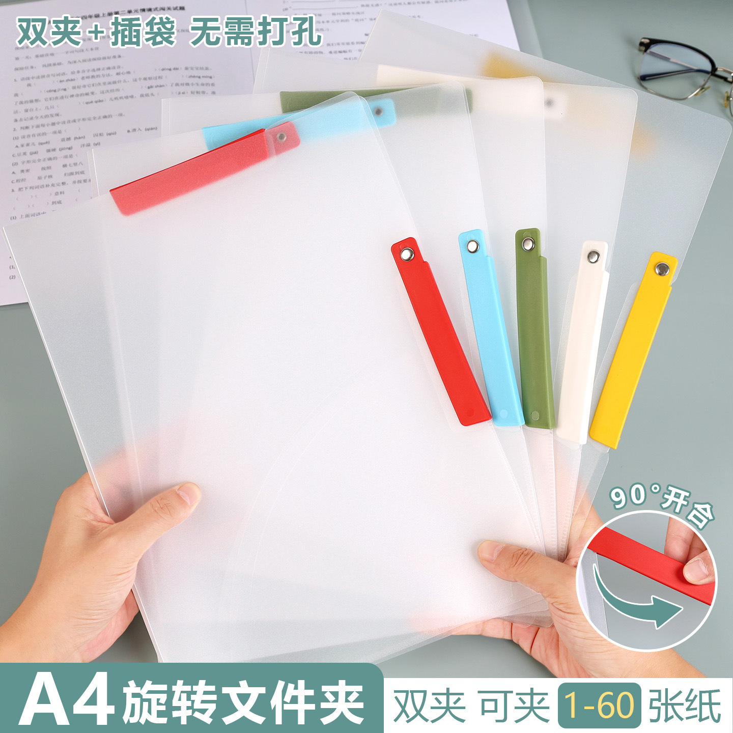 创意双旋杆文件夹学生专用试卷夹侧开扣抽杆夹彩色办公收纳资料夹