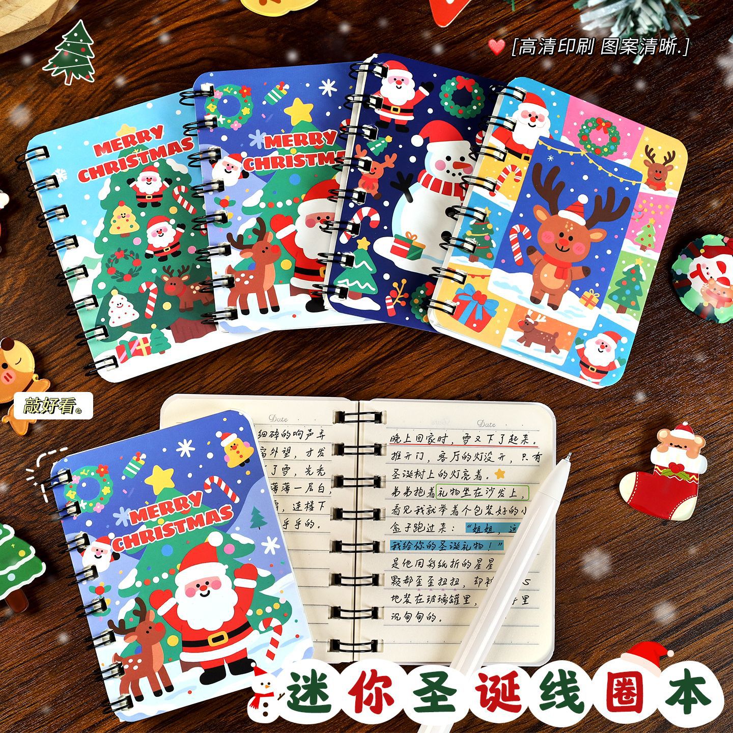 圣诞卡通线圈本学生迷你便携小本子可爱少女口袋学习笔记本子文具