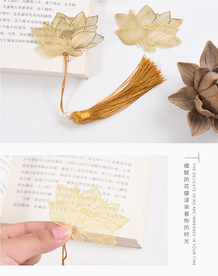 古風金属葉脈しおり流蘇復古典文芸透かしハスの花誕生日教師の日に先生にプレゼントする