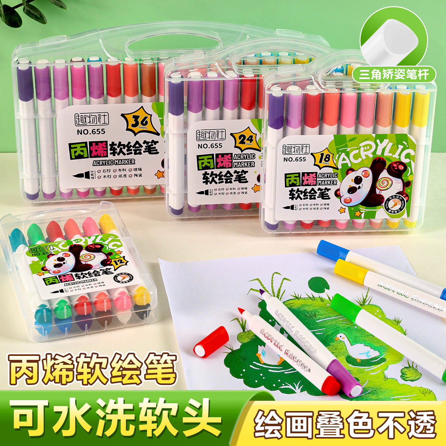 创意盒装丙烯软绘笔软头彩色涂鸦勾线笔36色不透色绘画套装马克笔