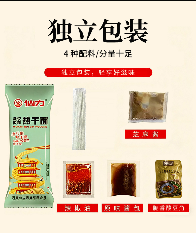 武汉风味热干面方便速食拌面【非油炸】带料包面条早餐拌面袋装