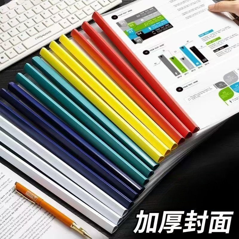 a4文件抽杆夹彩色拉杆夹透明收纳资料报告简历夹办公文具厂家批发