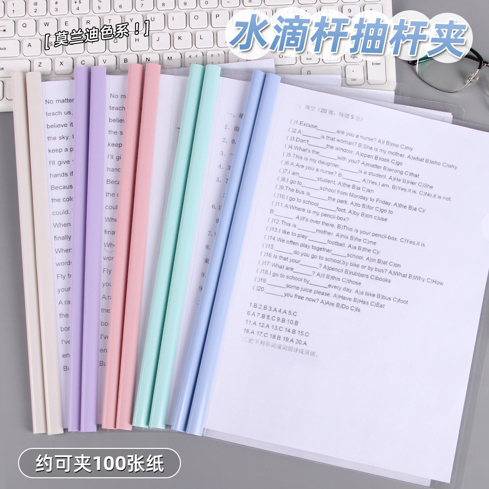 モランディ色レバークリップa4レバークリップ水滴レバー透明厚手大容量オフィスファイルファイルクリップ