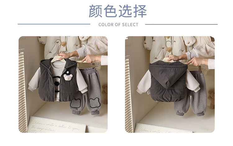 男童套装秋冬装2025新款洋气儿童夹棉马甲裤子加绒衣服冬季婴童套