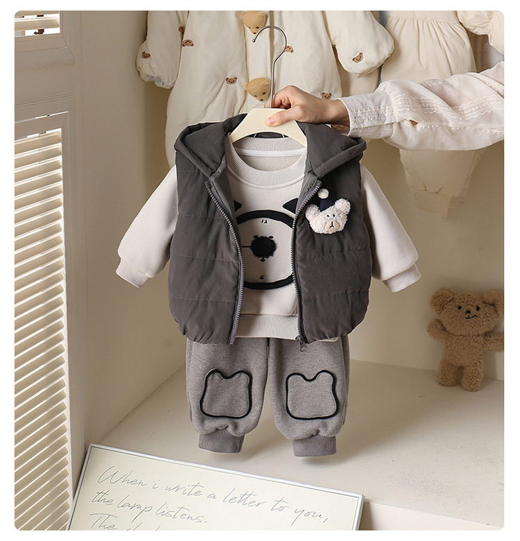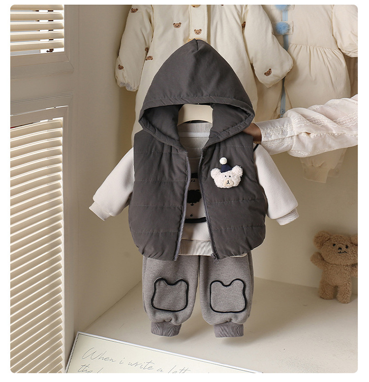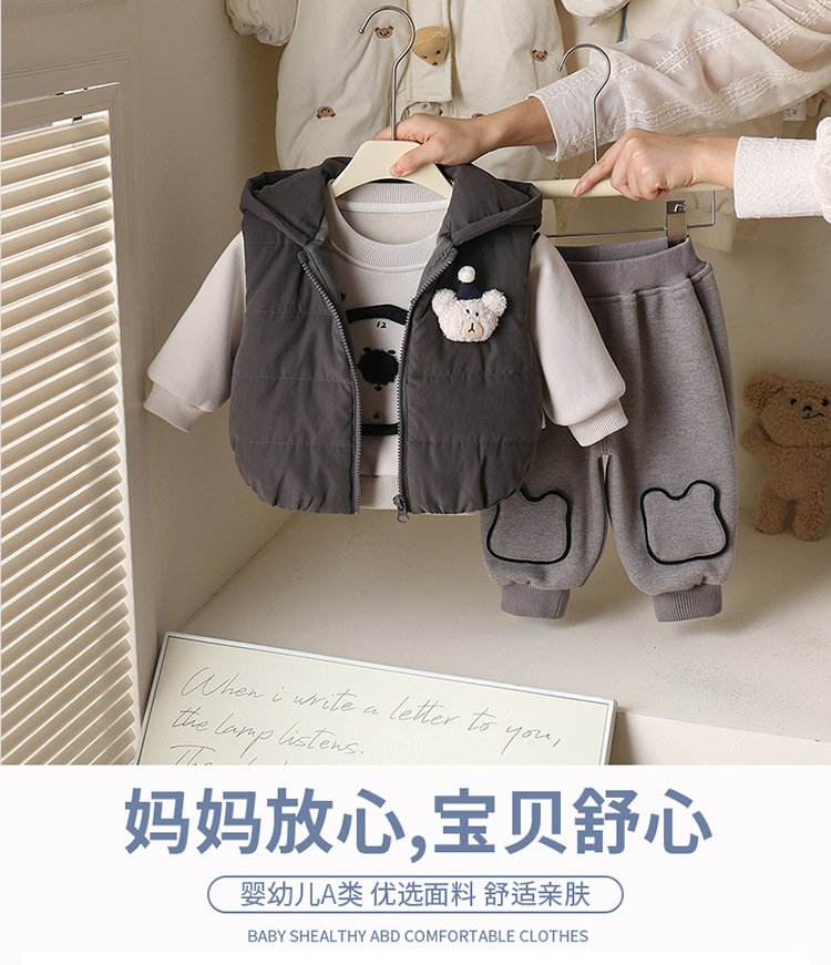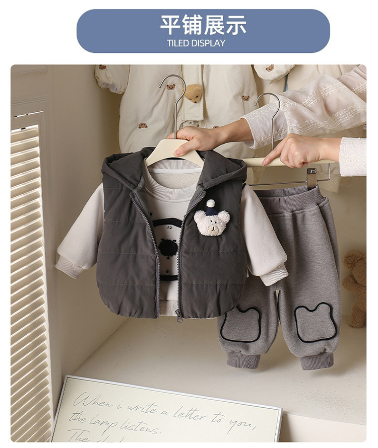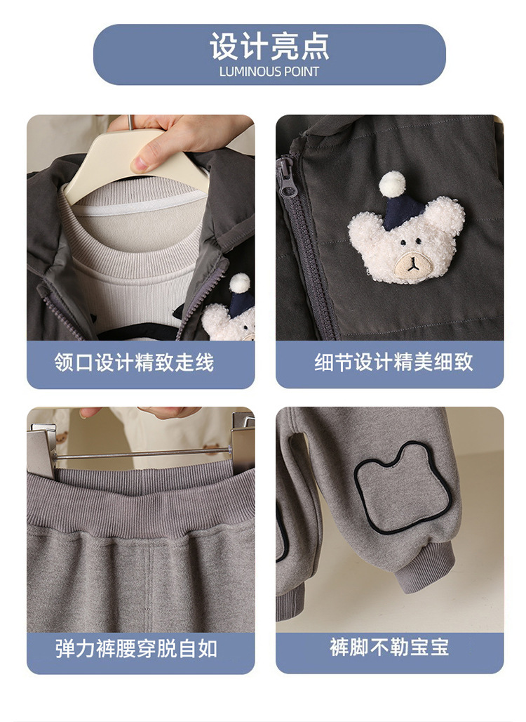 婴童秋冬套装韩系洋气小熊连帽宝宝加绒加棉保暖两件套儿童外出服