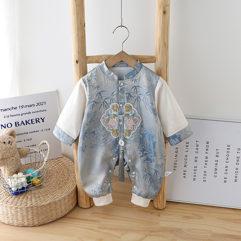 中国式の赤ちゃんの服の赤ちゃんの秋の服の連体の唐の服は超萌満月の百日の満1歳のドレスの春と秋の外で服を着ます。