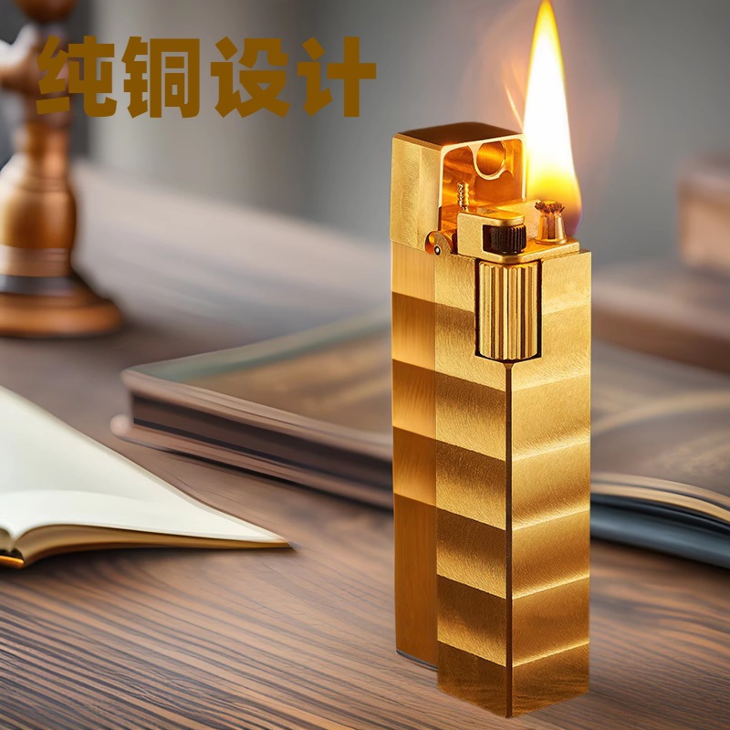 好運達角型灯油ライターR09銅材質側滑車点火創意砥石機卸売り代理