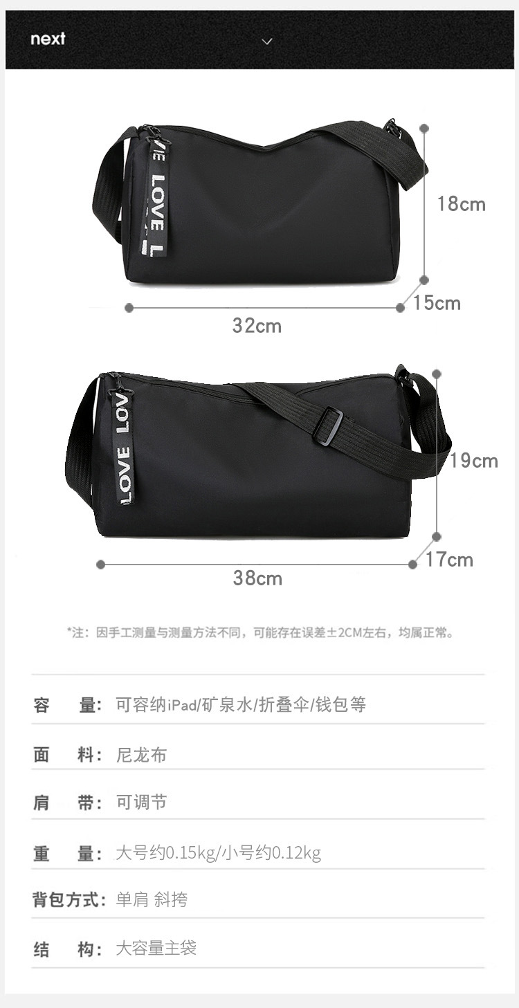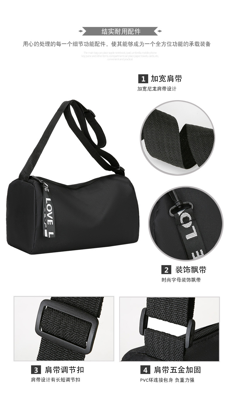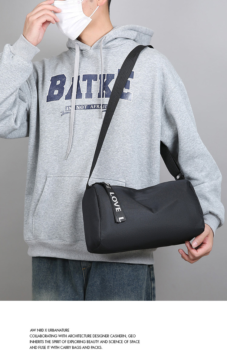 潮流百搭休闲斜挎包防泼水男士通勤圆筒包大容量韩版简约单肩包女