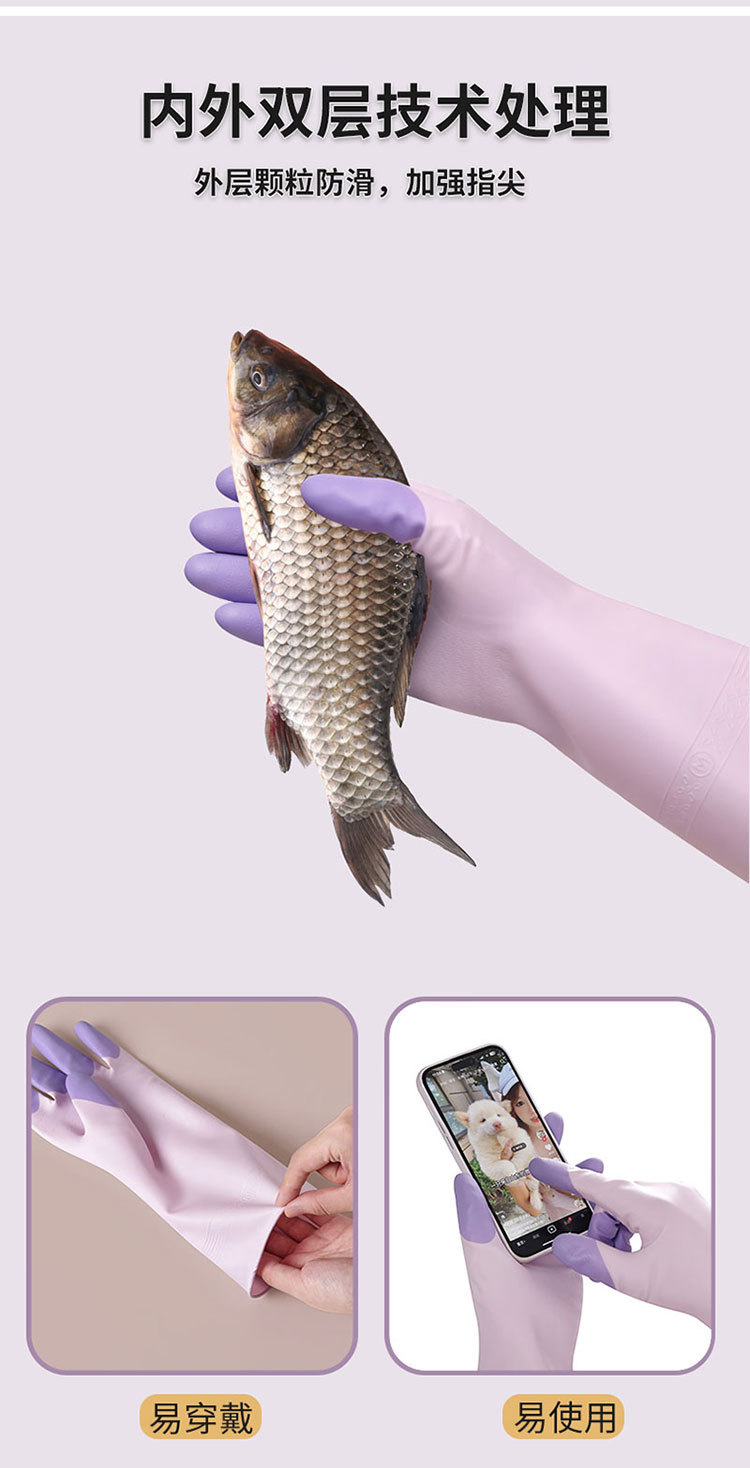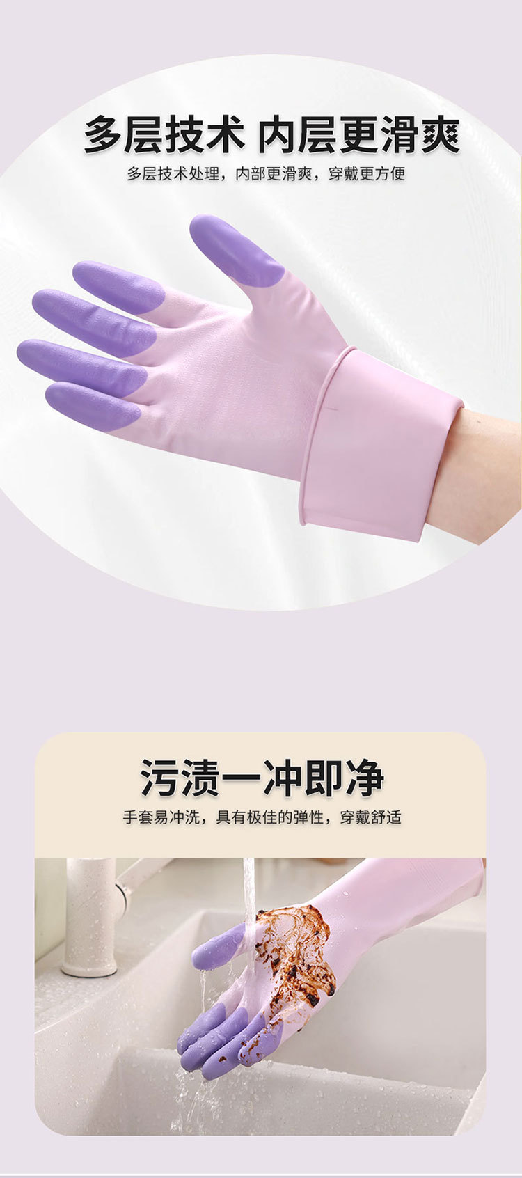 洗碗家居手套女加厚厨房家务胶皮防水防油洁耐用橡胶乳胶洗衣服