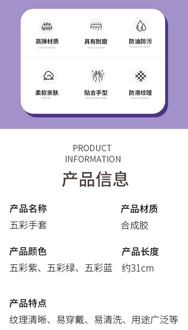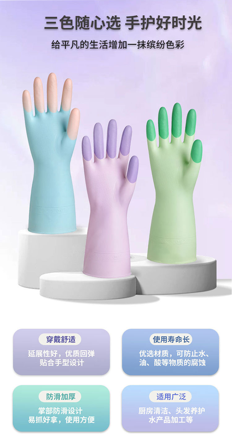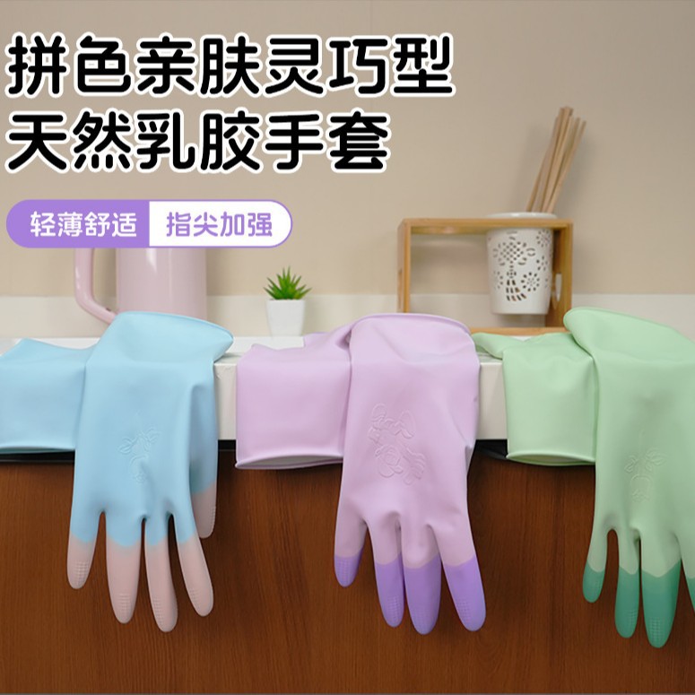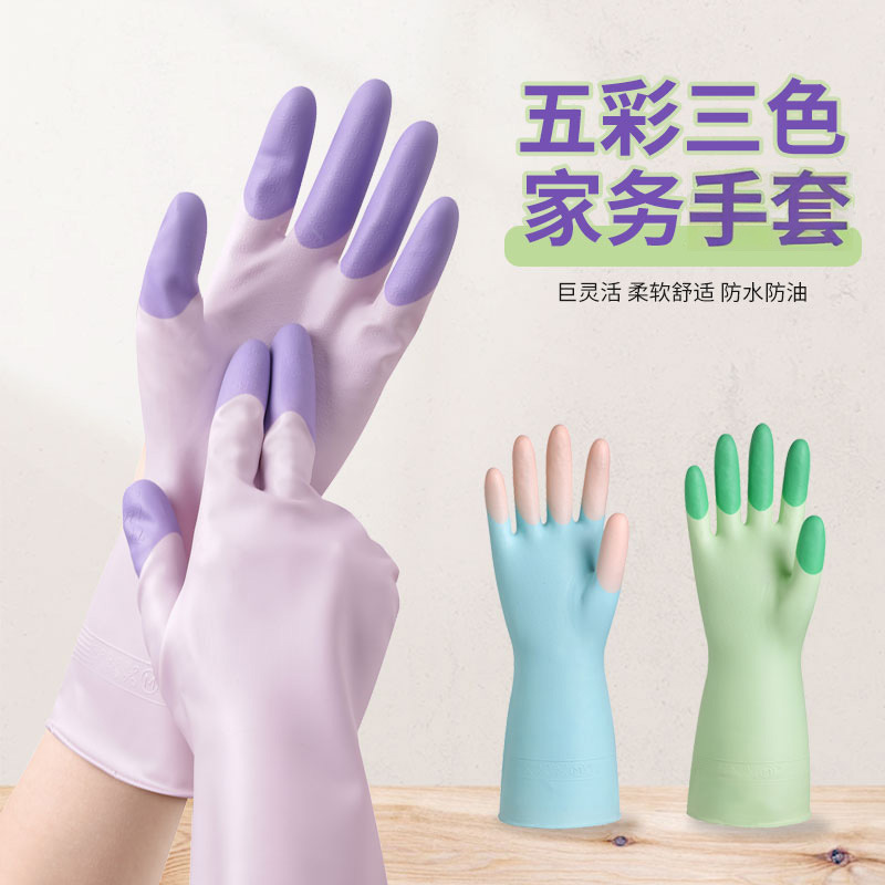 五彩乳胶手套橡胶洗衣服防水防油家务手套女厨房洗碗耐用清洁手套