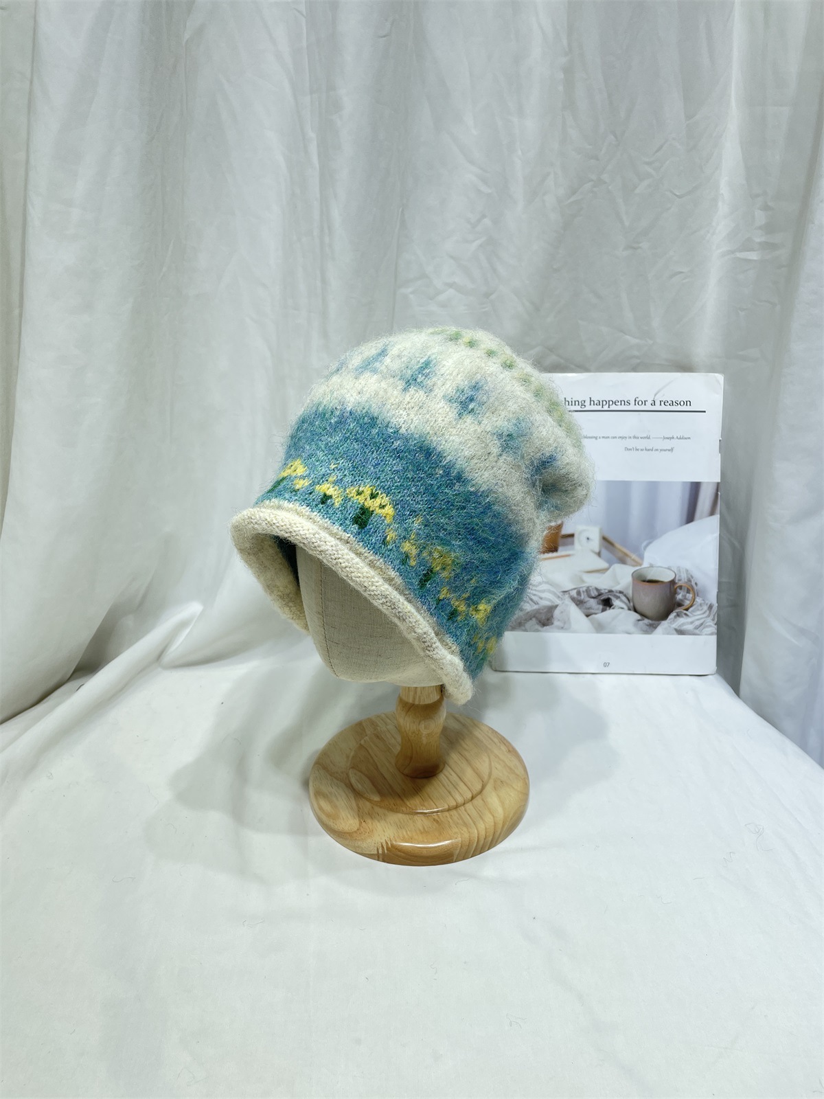费尔岛风针织卷边堆堆帽女秋冬复古显脸小冷帽慵懒风保暖包头帽潮