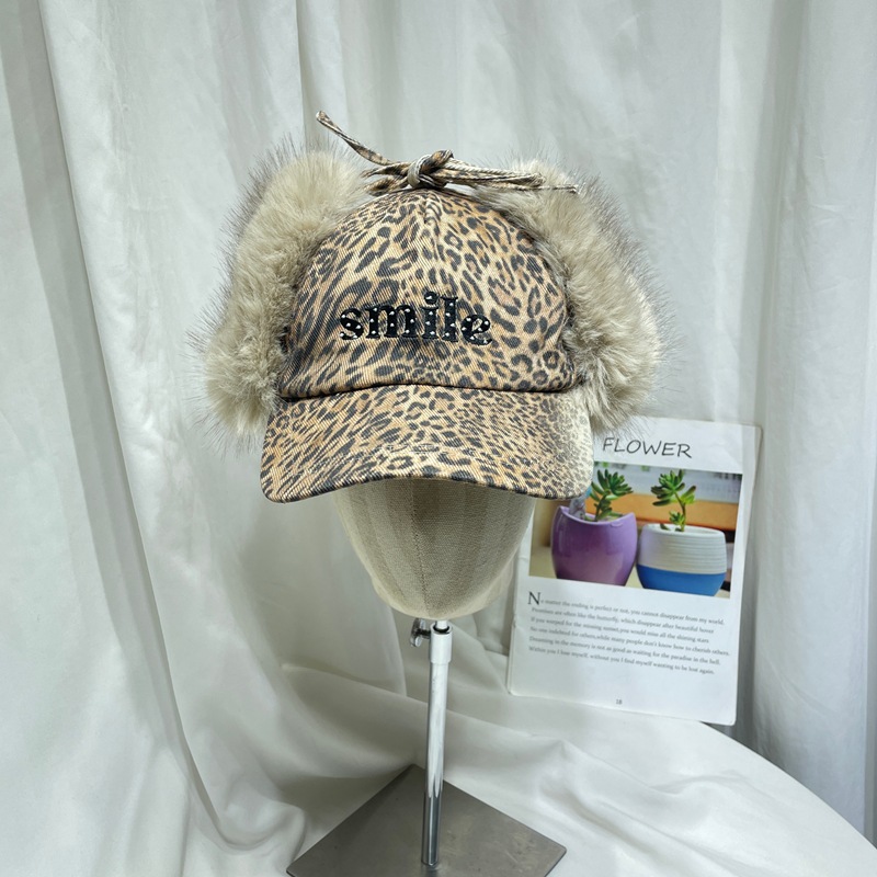 美式复古豹纹毛绒鸭舌帽女秋冬加厚保暖护耳滑雪飞行帽防寒雷锋帽