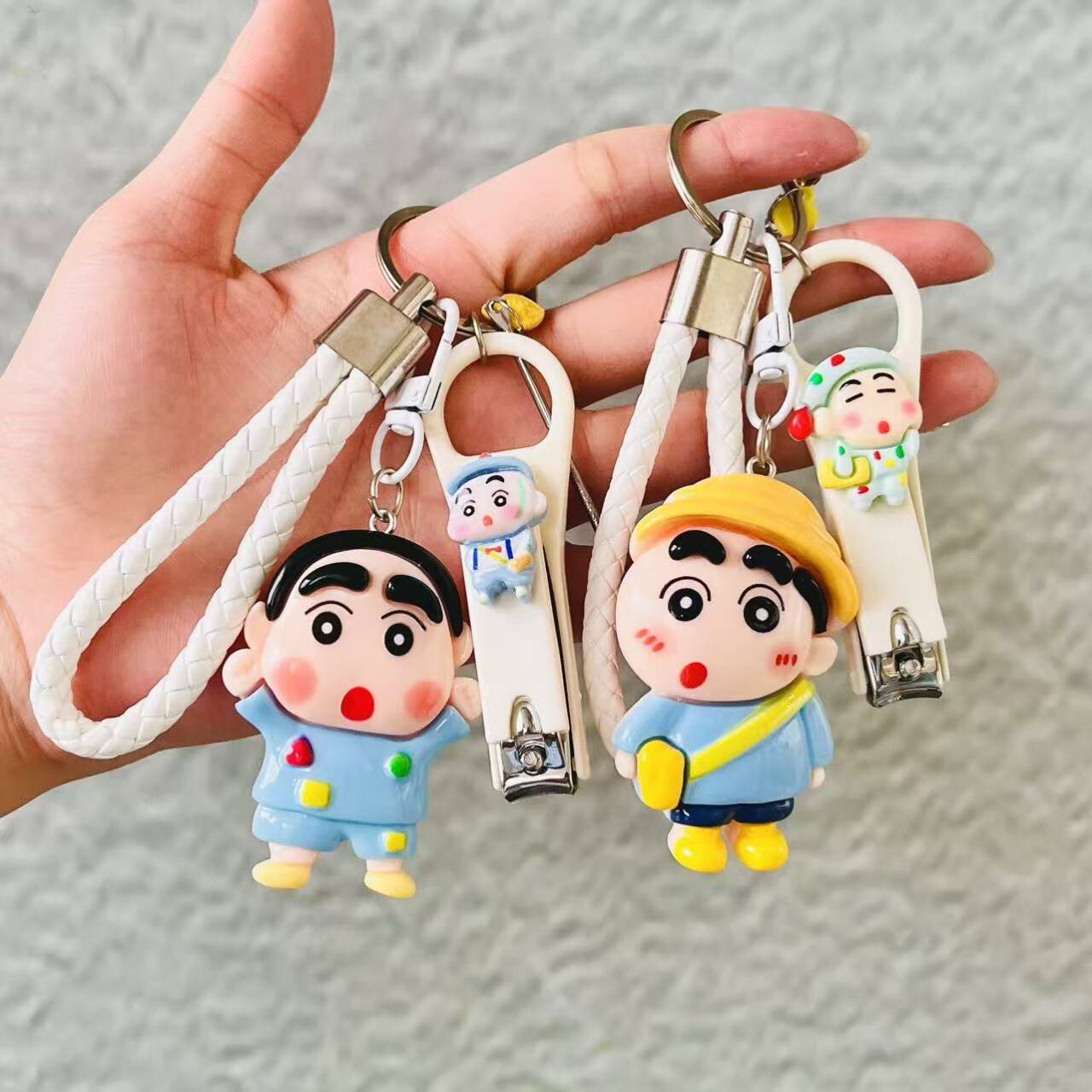 新款可爱小新钥匙扣汽车钥匙挂件碳钢指甲刀闺蜜情侣书包耳勺套装