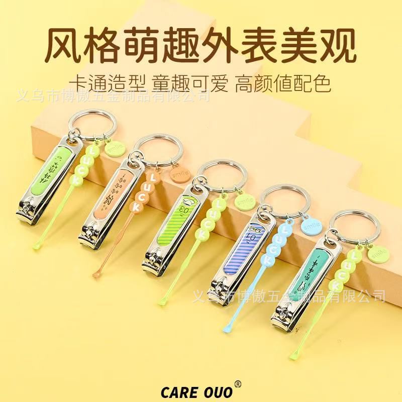 可爱卡通钥匙扣指甲钳耳勺简约钥匙套装挂件女生小莓剪指甲刀锁扣