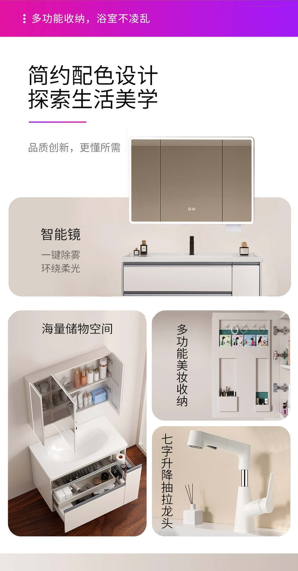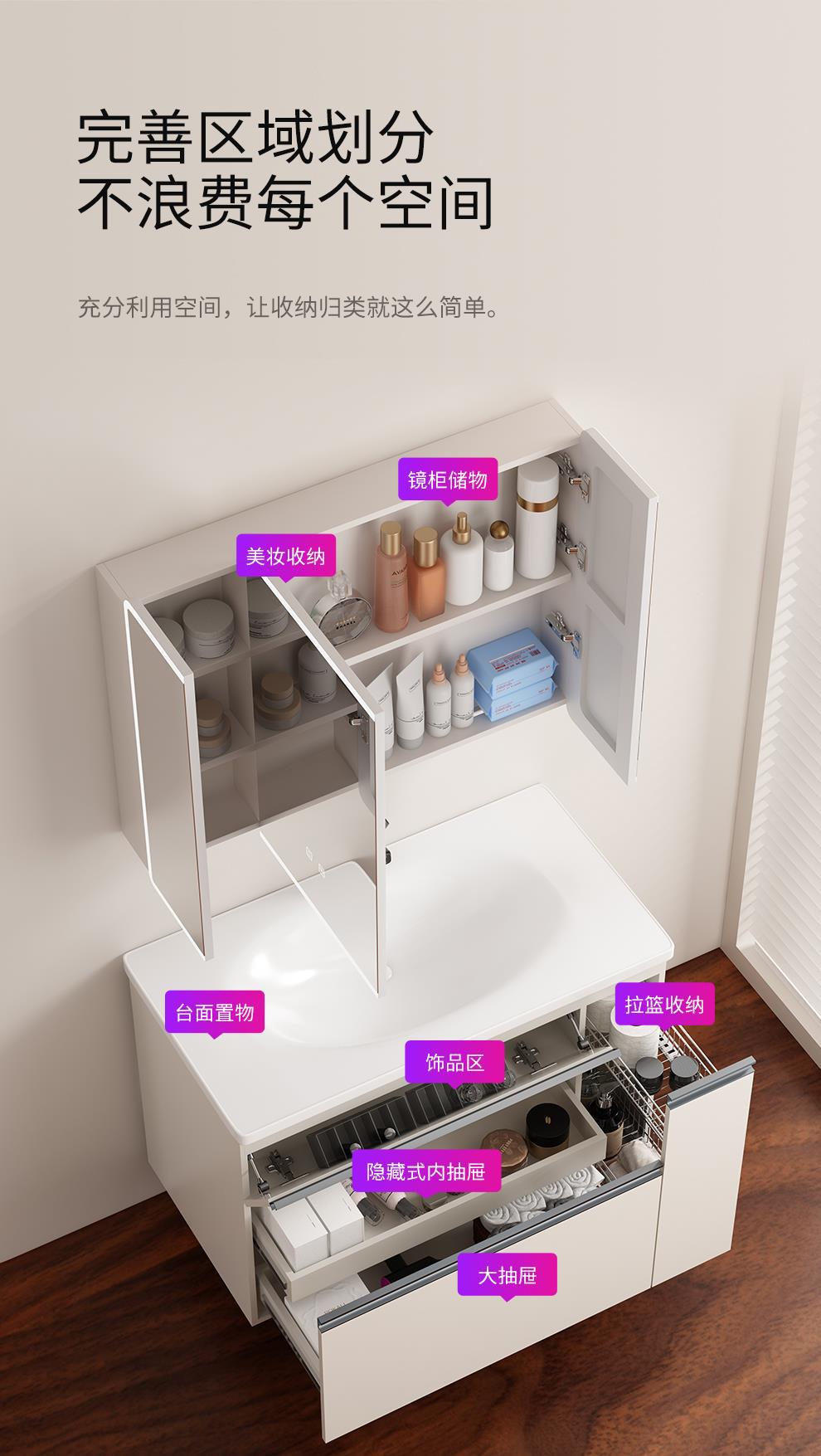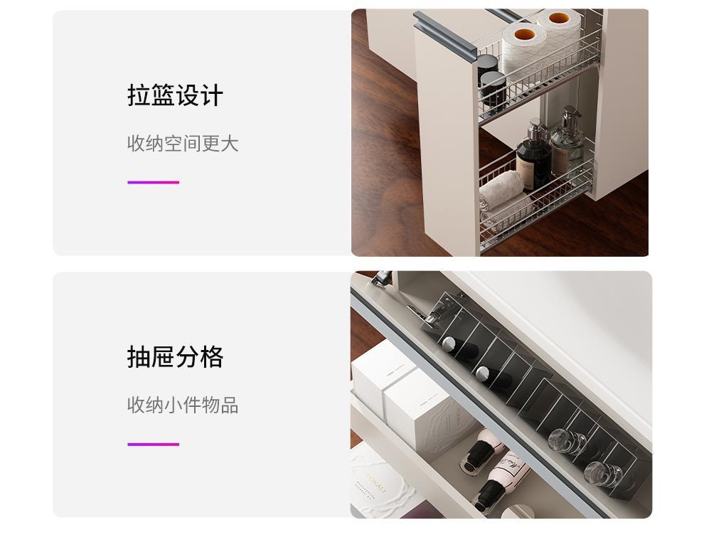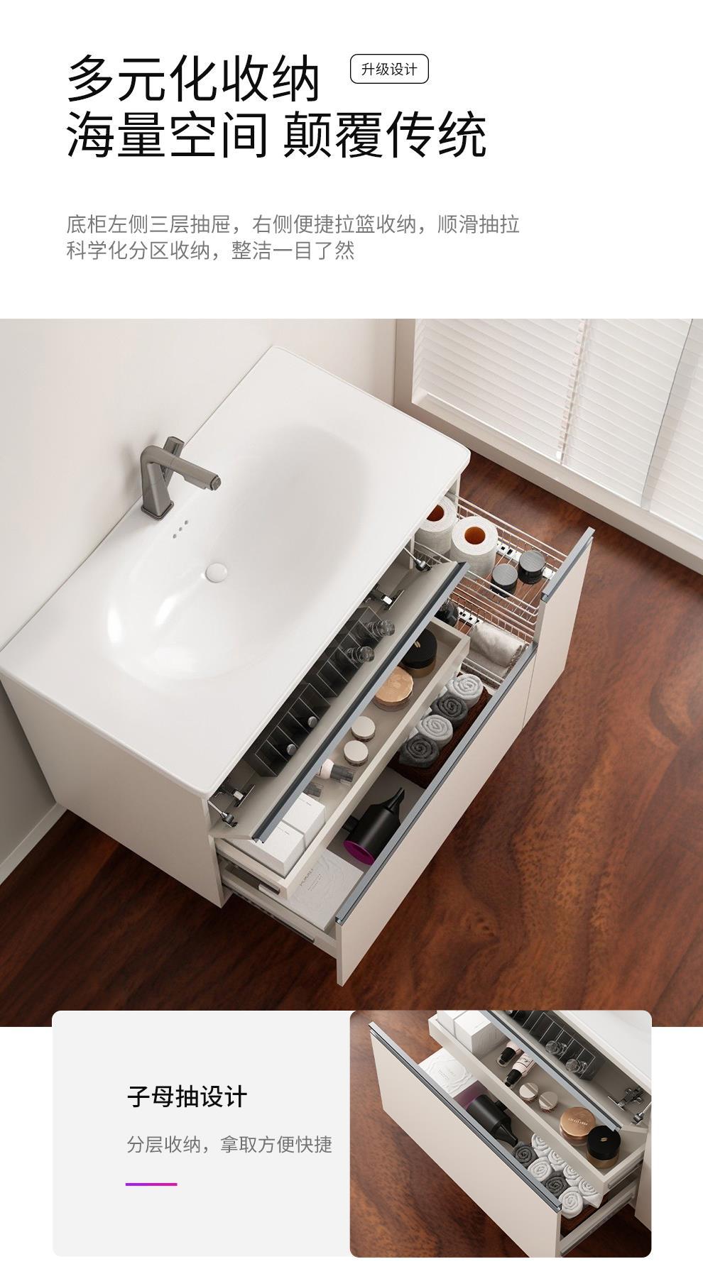 爆款日式大收纳浴室柜组合抽屉拉篮洗漱手脸台陶瓷一体盆