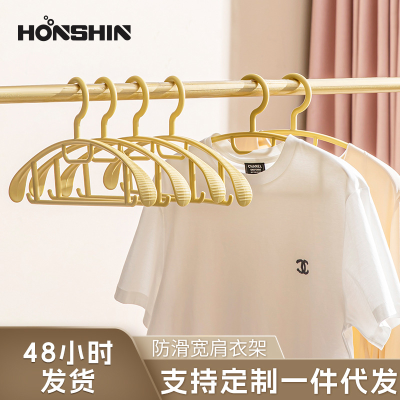 家庭用の無痕保護服ハンガー滑り止めの広い肩の服の肩の角を防ぐプラスチックの棚は服を掛けて服を干します。