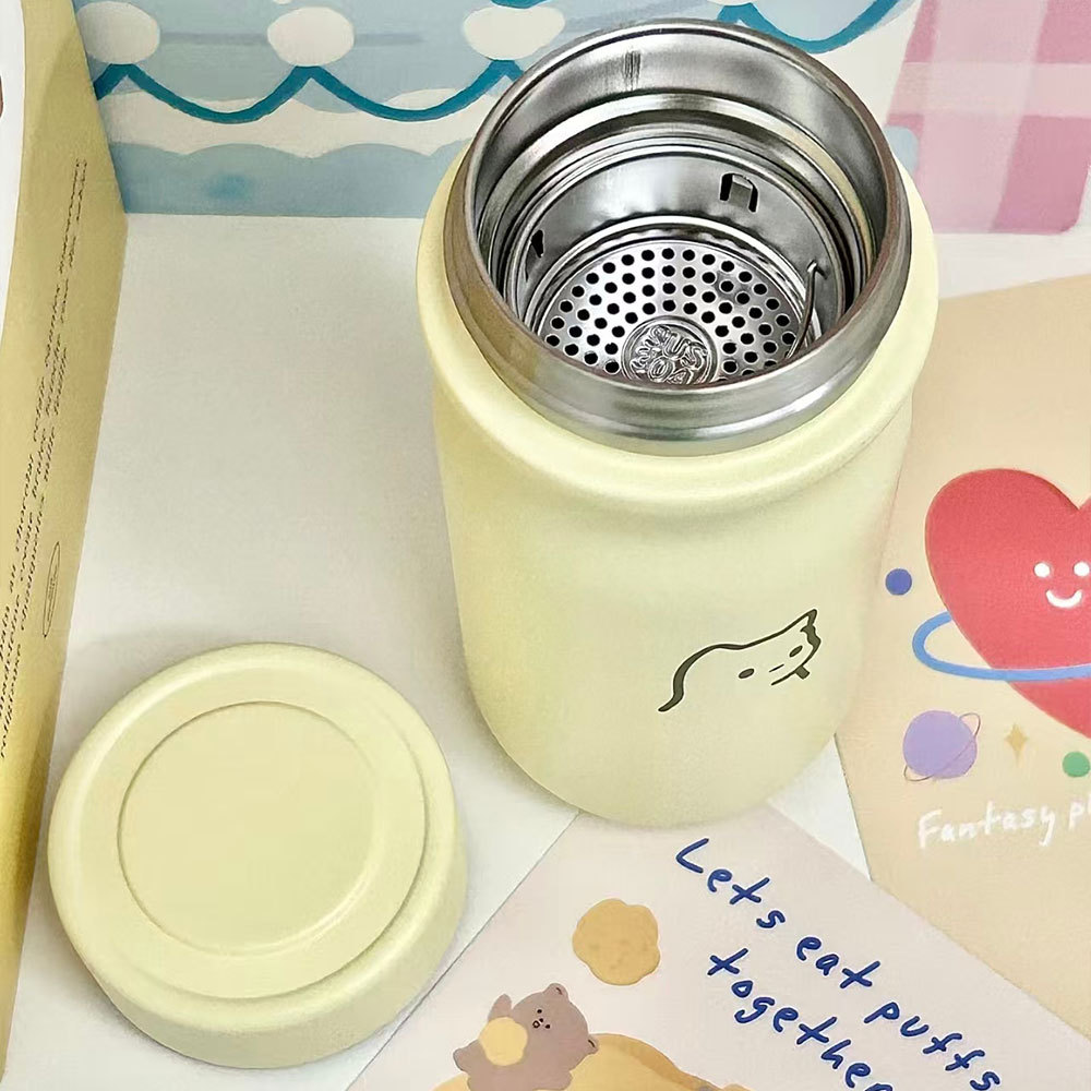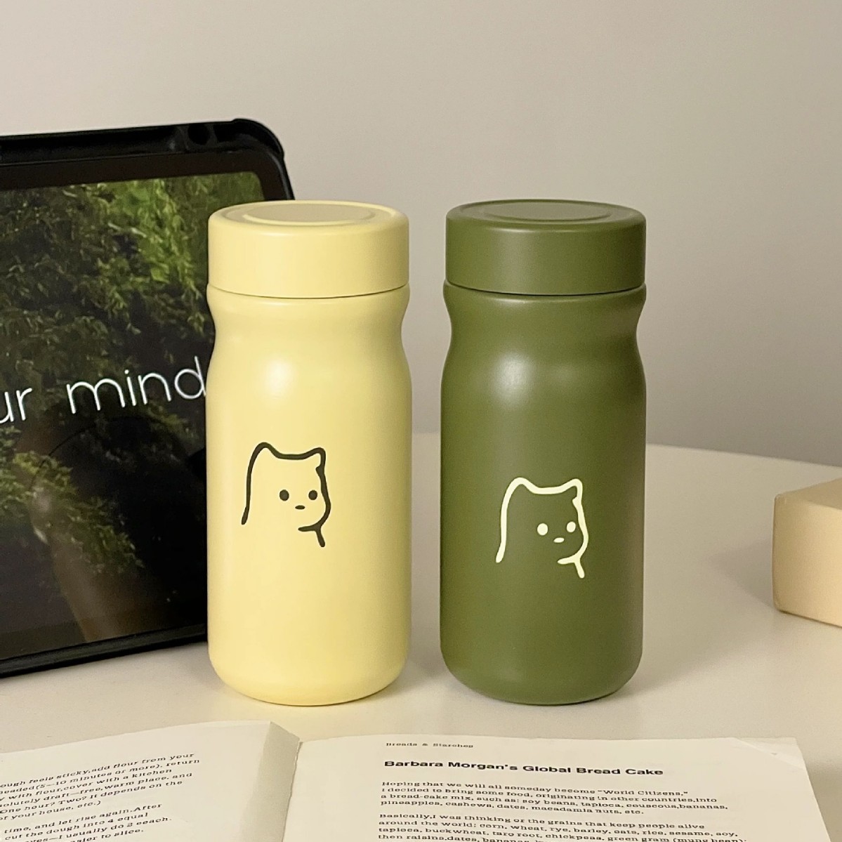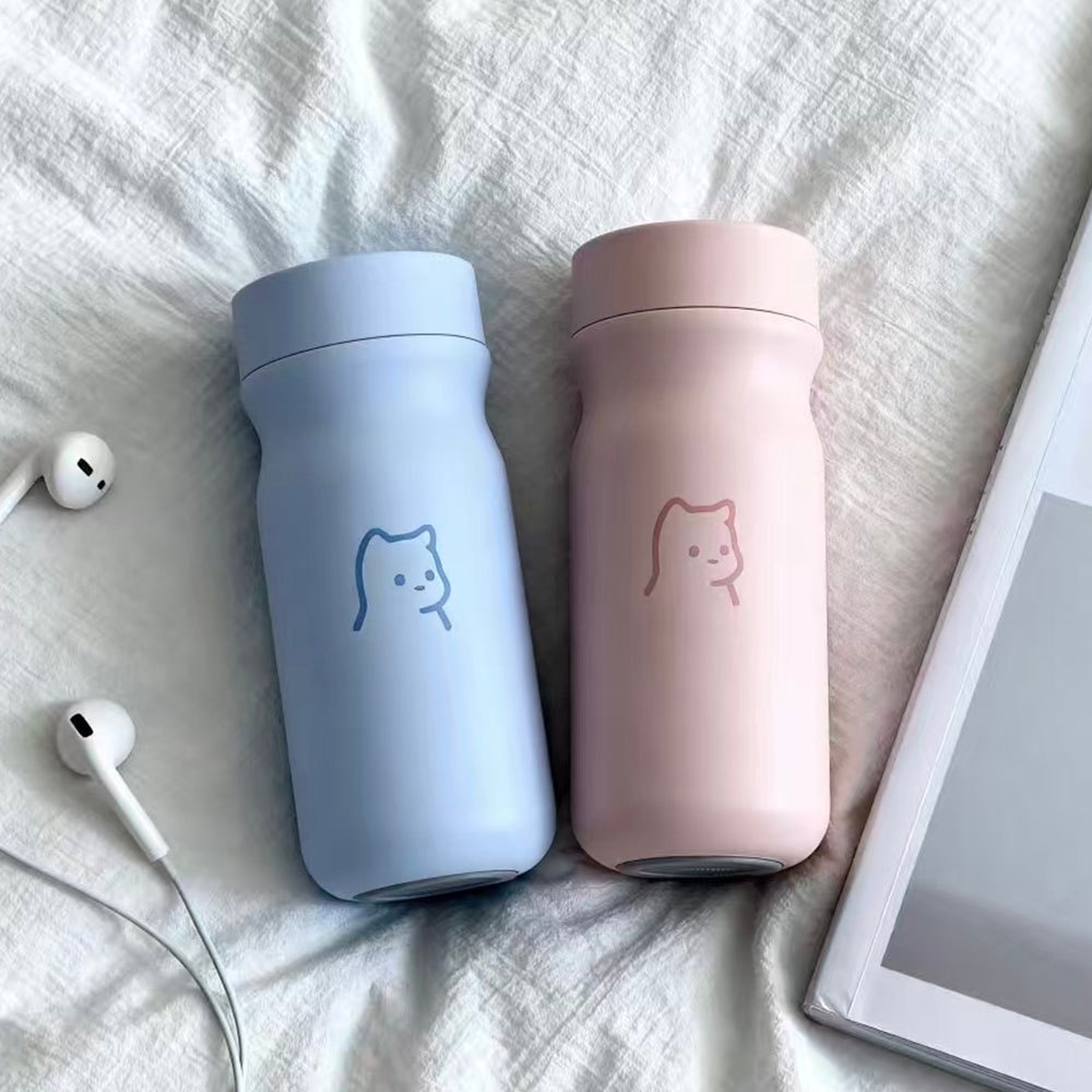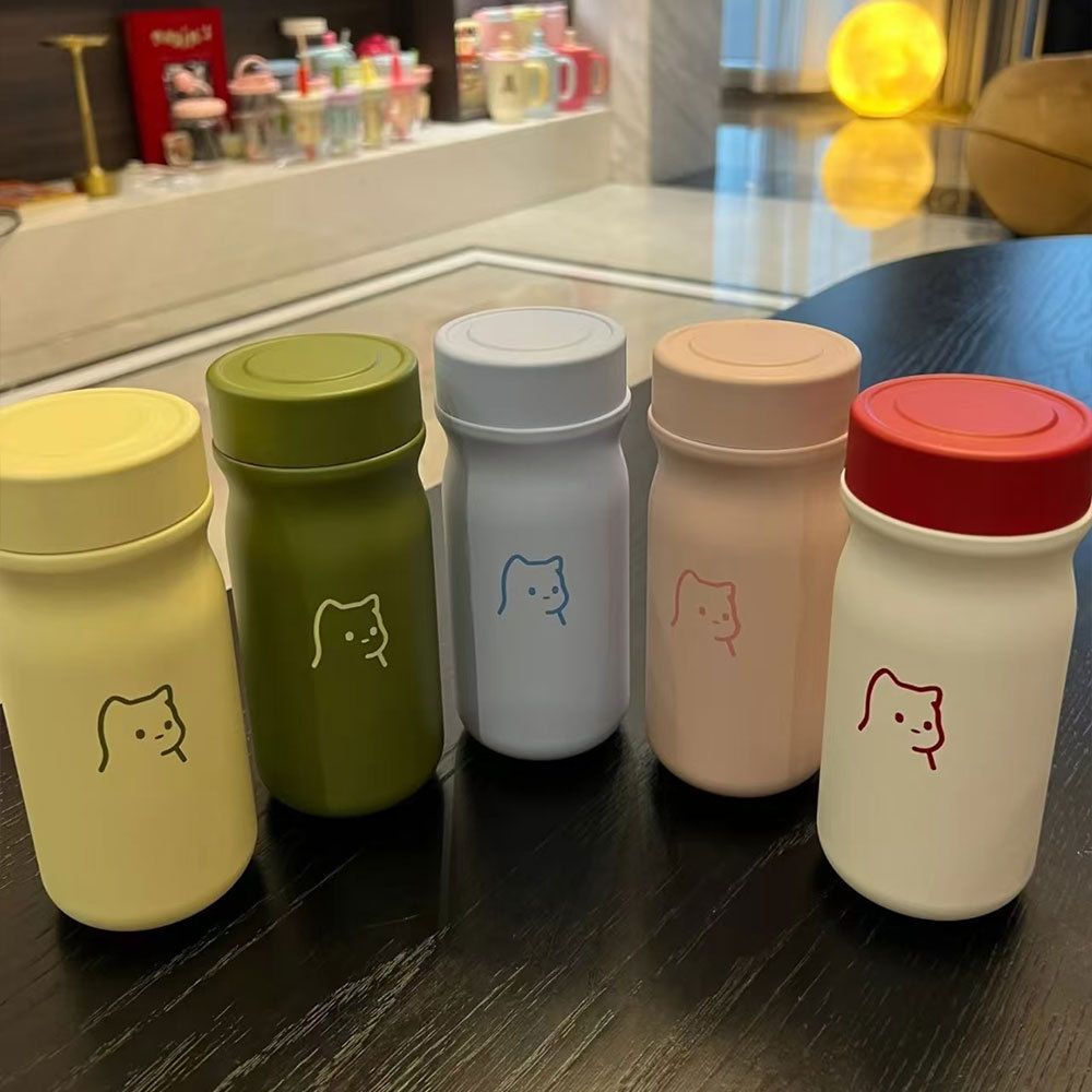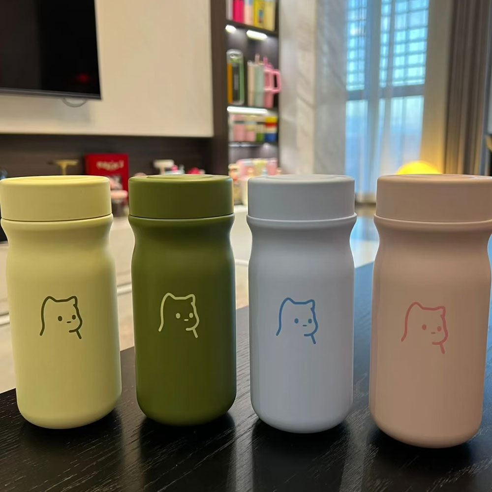 新款可爱简约猫咪保温杯女生高颜值便携小巧水杯带茶隔现货批发
