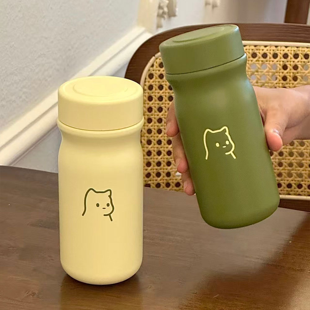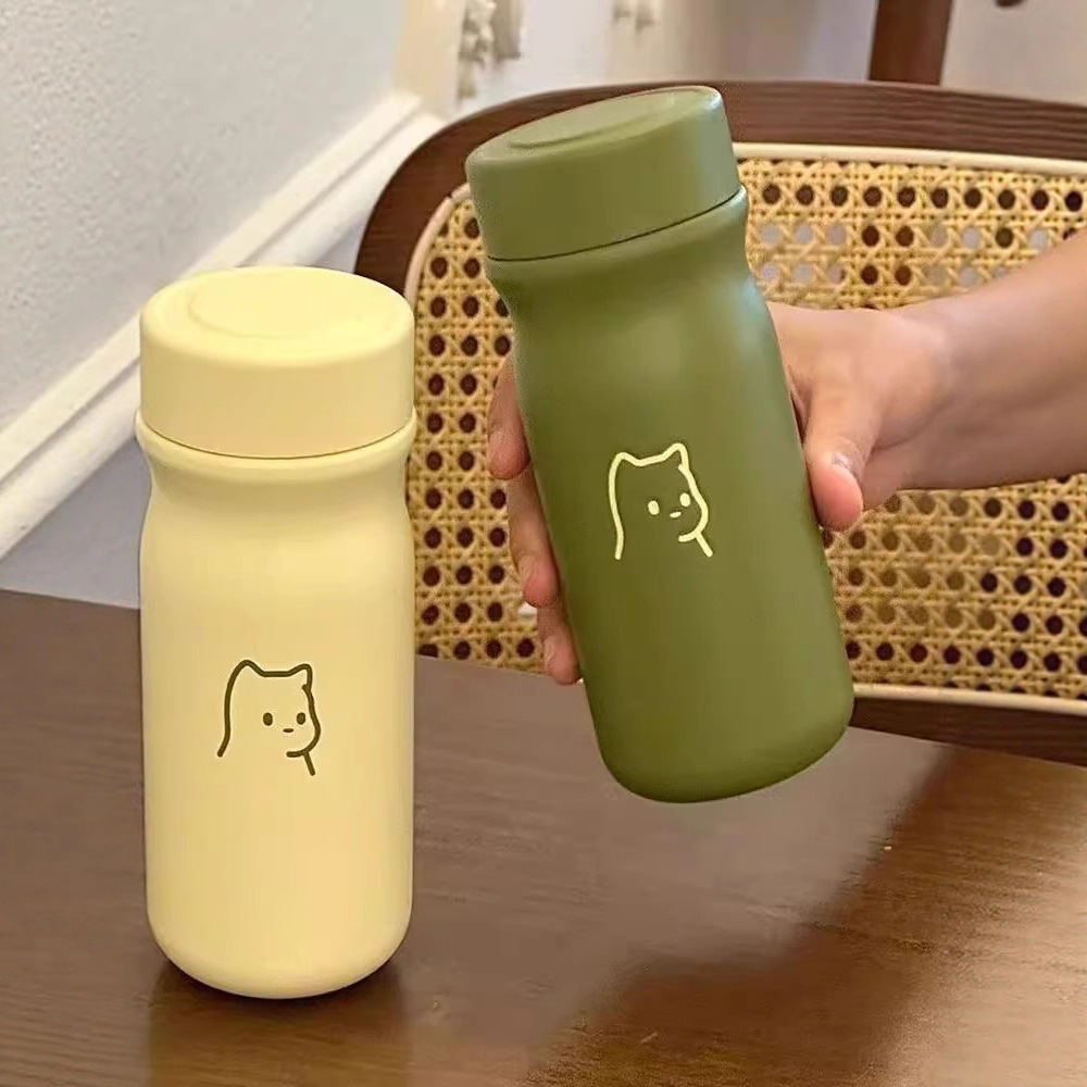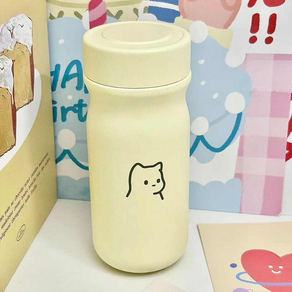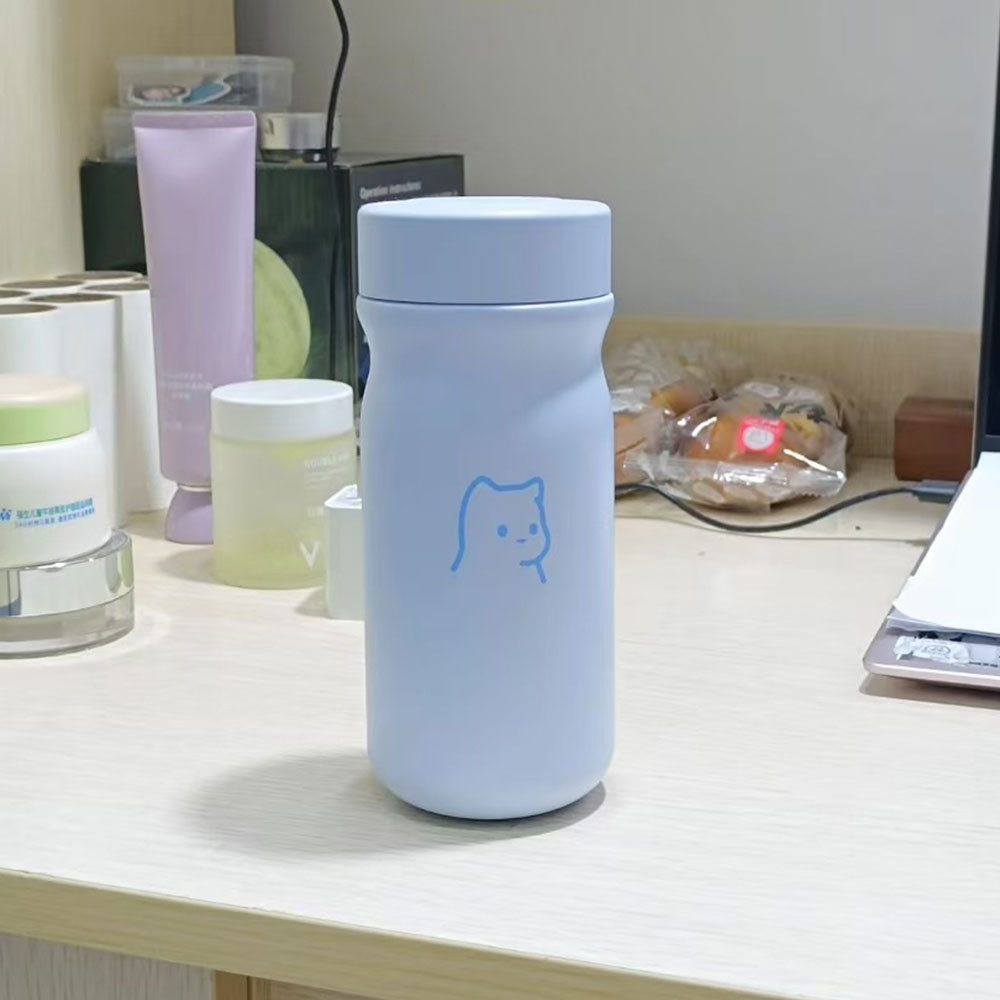 新款可爱简约猫咪保温杯女生高颜值便携小巧水杯带茶隔现货批发